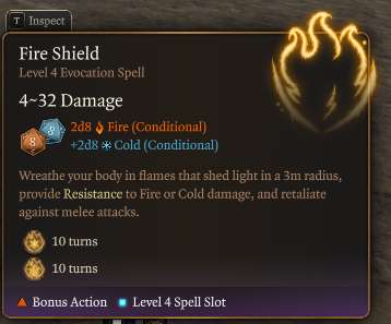 现在,火焰护盾的两个版本都需要一个奖励动作(Bonus Action)而不是一个动作(Action)。这同样适用于提供这些法术的装备。支持施放等级超过6级的情况,并且可以在任何修改角色最大等级的模组之后加载。