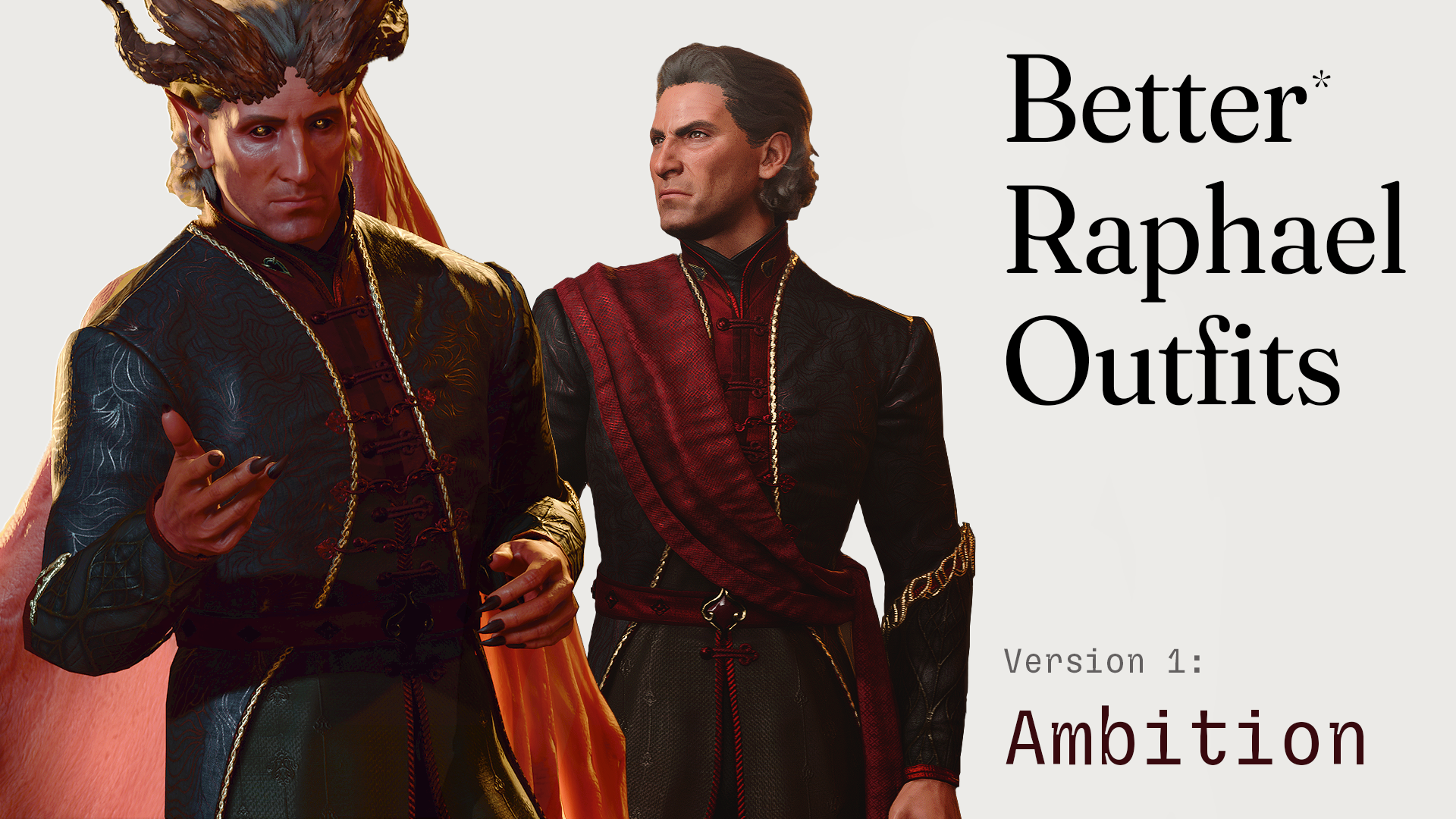 将游戏中拉斐尔的服装替换为黑色和血红色方案的 公爵华丽礼服,因为“他最喜欢的颜色是鲜血。”有2个选项,但一次只能使用一个。此版本为 V1: 脱颖而出。