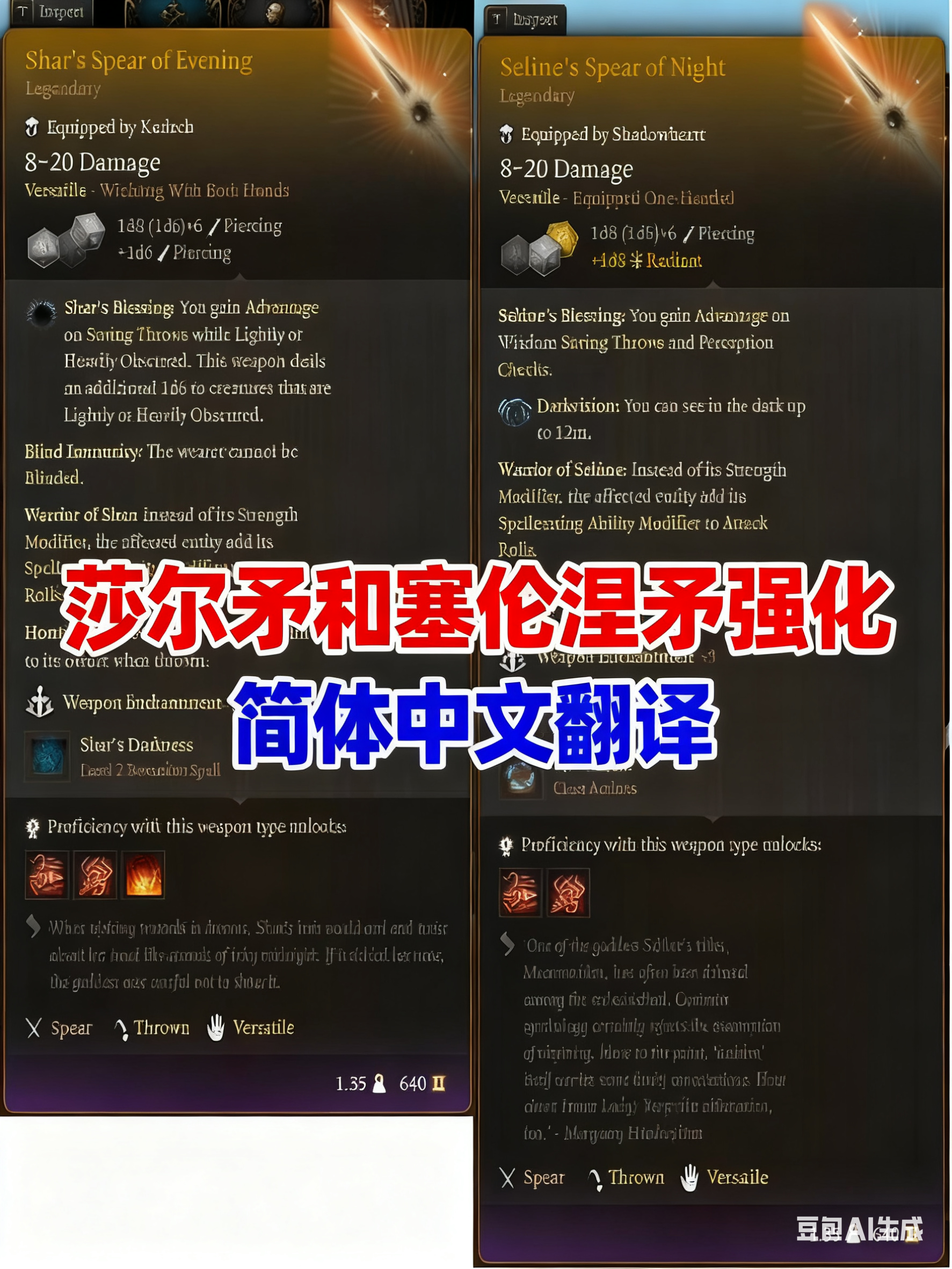 - 装备暗夜长矛时,可获得一次性的法术强化机会(每场战斗触发一次)。