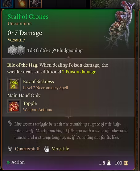 改进了女巫之杖,使其在二级时施放疾病射线(而非一级),并添加了一个新的被动效果“女巫的胆汁”,使穿戴者造成的所有毒伤害增加2点。
