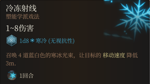 当冰冻射线等级达到 5、10 和 17 级时,会生成一道额外的射线,而不是造成额外的 1d8 冰霜伤害。