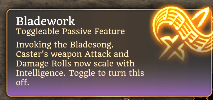 - 剑舞使用的次数与你的智力调整值相关联,而不是熟练加成。