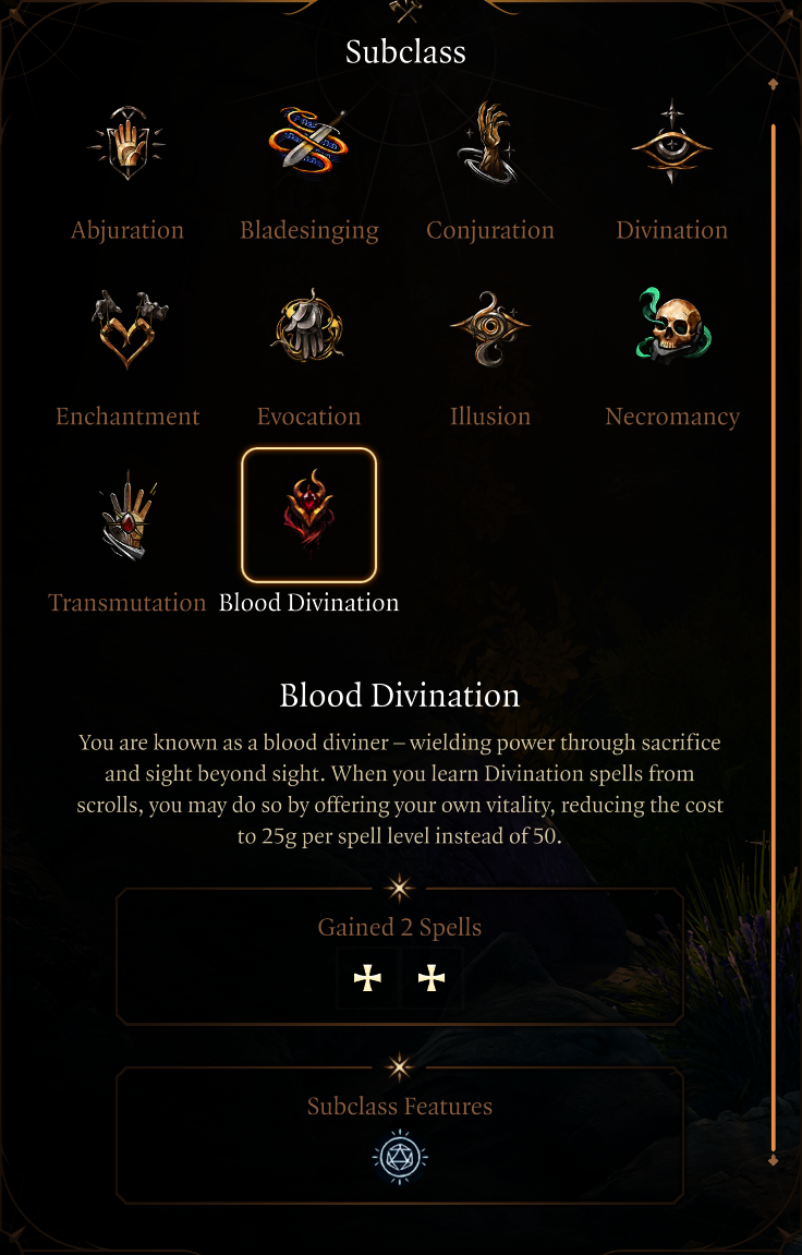 血卜副职是我在一个桌面 DnD 活动中玩的自制内容。它与常规占卜者副职相同,除了第6级副职特性专家占卜被一个名为血色灌注的独特副职特性所取代。