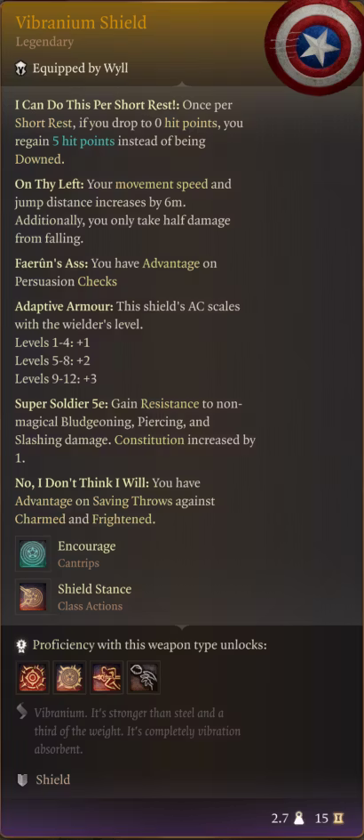 这是我在 Nexus 上发布的美国队长模组的 Toolkit 版本。它包含自定义模型和被动技能及法术。盾牌打击、冲锋星和反弹盾都会随着等级提升而增强,鼓励技能提供的临时生命值也会随之增加。