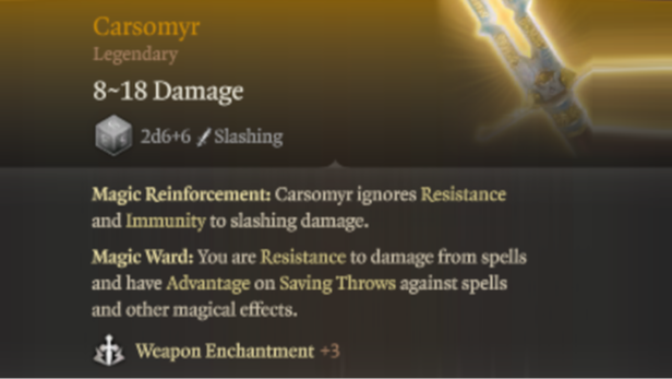 添加了来自《Baldur’s Gate 2》武器和护甲模组的 Carsomyr,作为一个独立的模组。