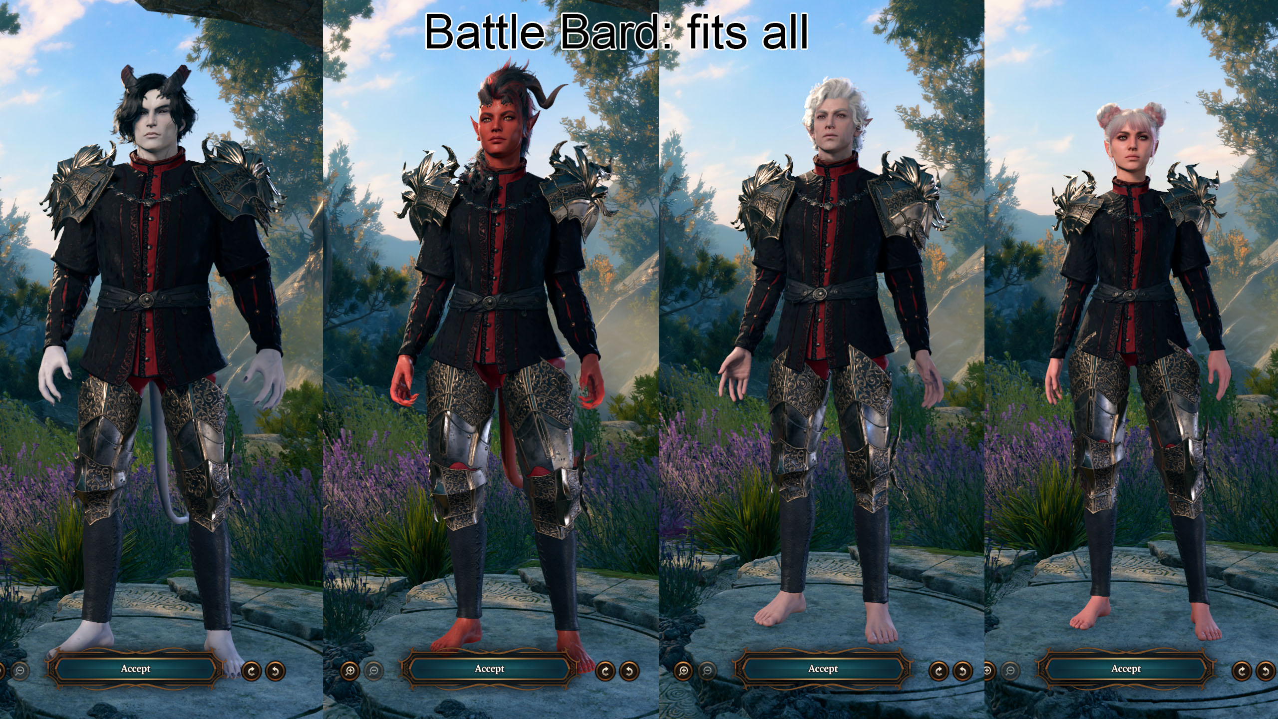 -这些盔甲是为 BT4 设计的,但我尽量让它们适合大多数体型和种族,只要游戏中有合适的部件即可。