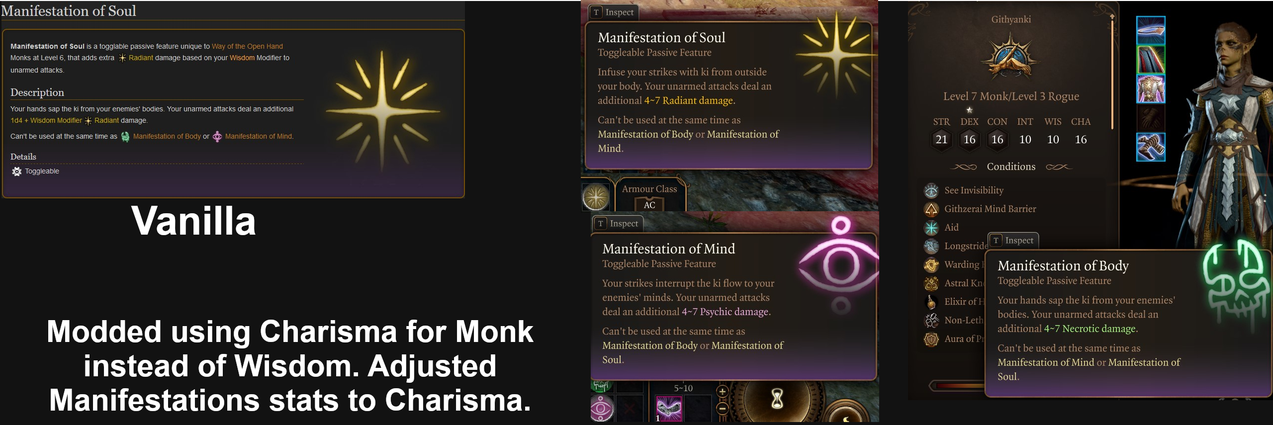 修复了心灵、身体和灵魂的化身,因为基础模组尚未解决这些问题(使用智慧属性而不是魅力属性)。