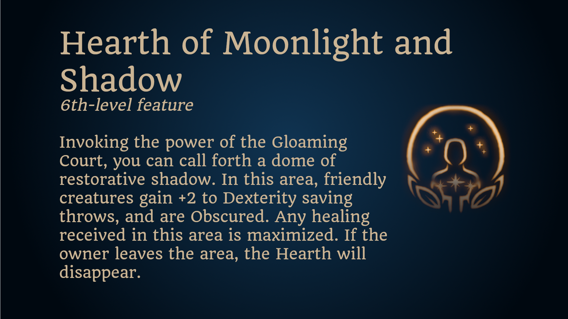 你可以在梦中移动到任何你知道的地方。使用一个动作,你可以进入梦境并传送到另一个地方,距离不超过30英尺(9米)。当你到达目的地时,你会从梦境状态醒来。