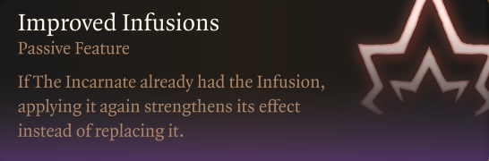 召唤化身,一个强大的同伴,并通过元素灌注来增强它,以获得独特的被动能力和新能力。