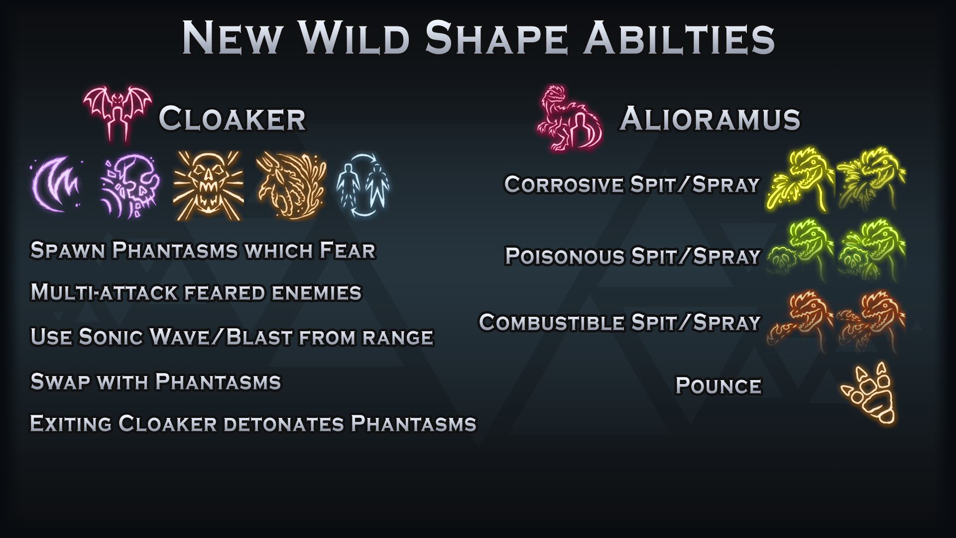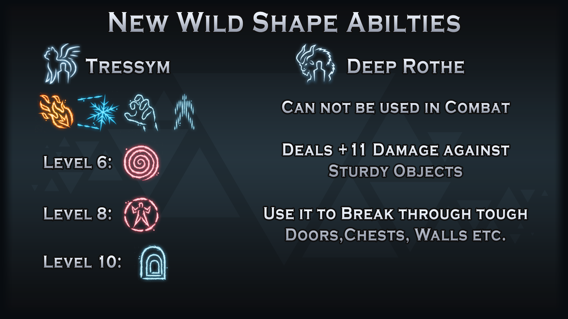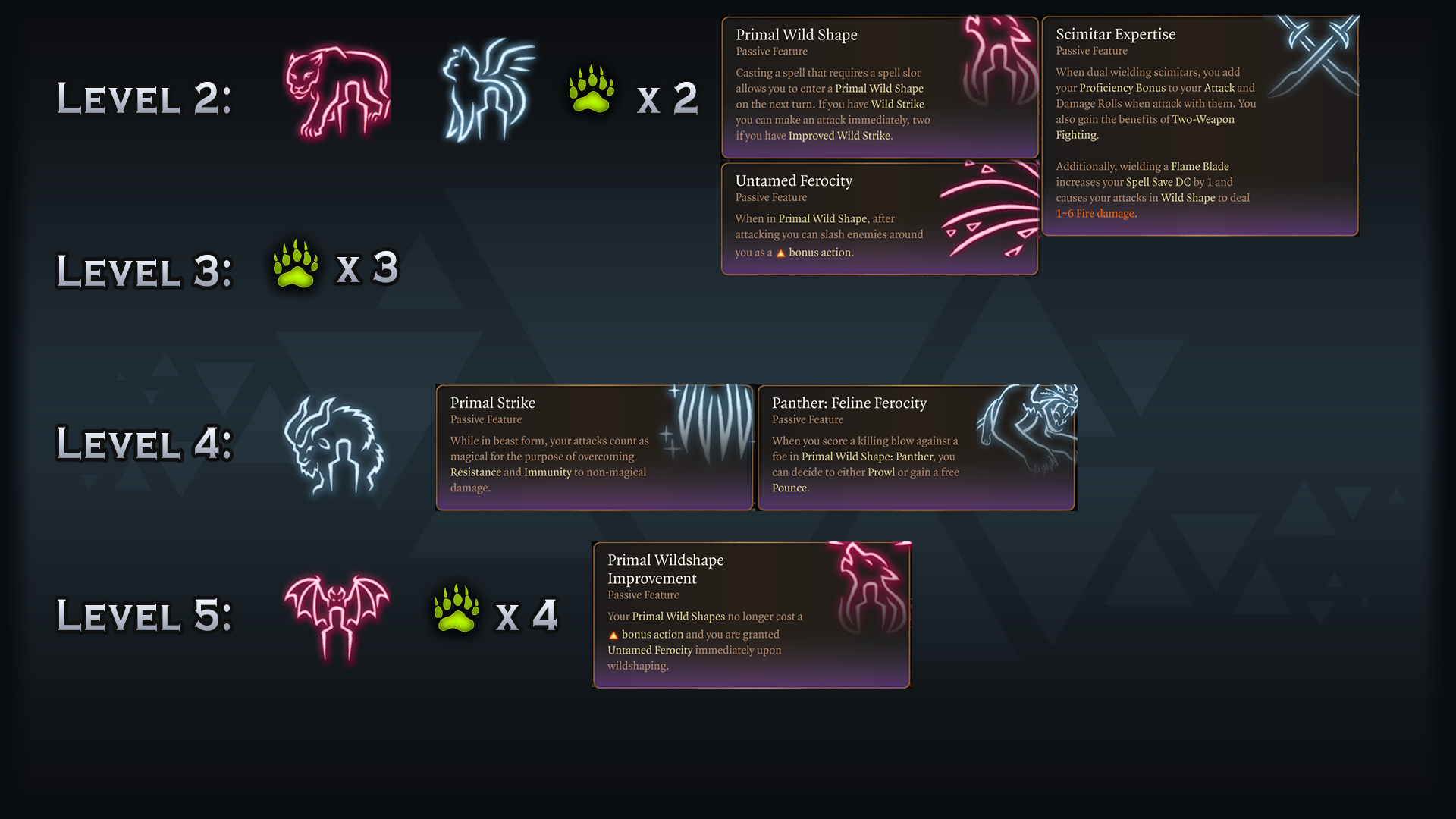 - 德鲁伊野兽形态可行性 – 重制的野兽形态,数十个新法术和专门化的野兽形态