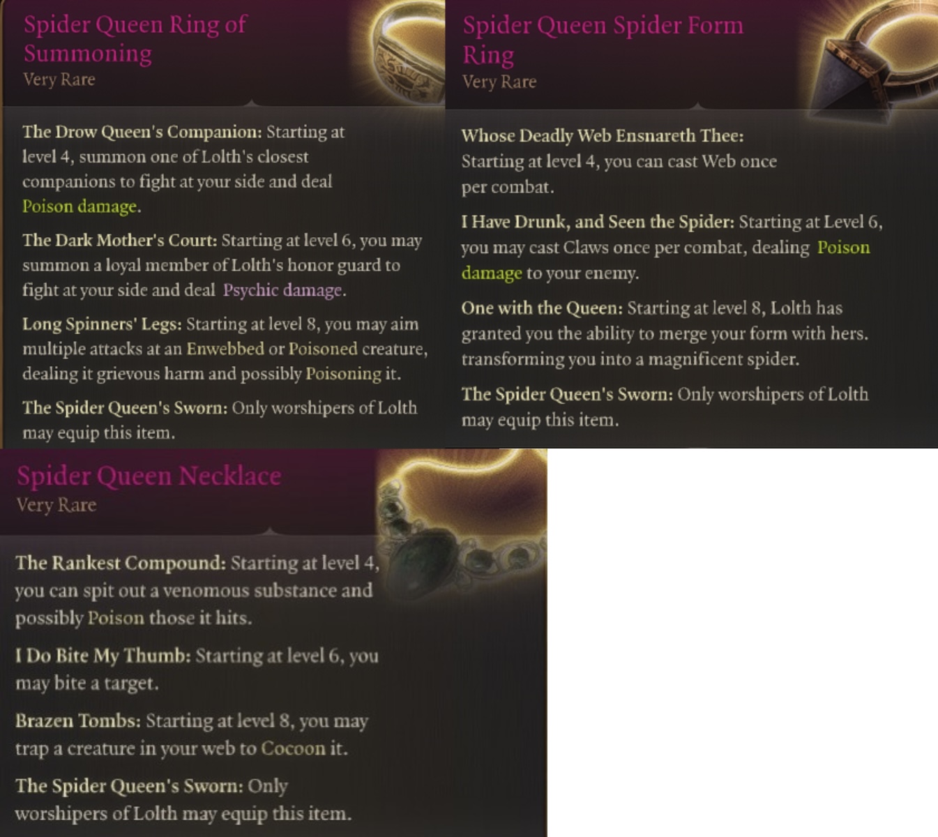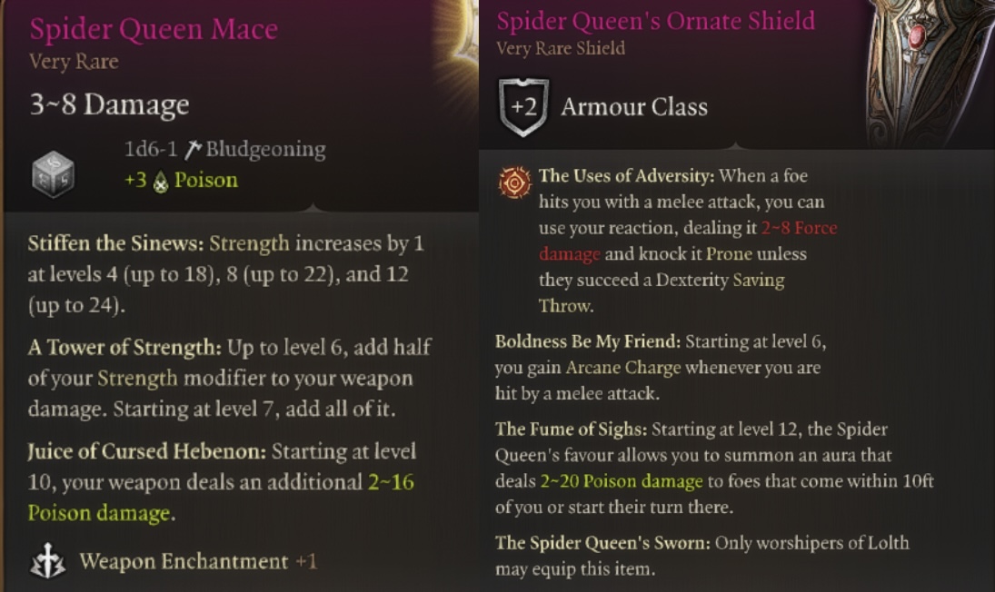 - 珠宝和盾牌只能由洛斯女神的信徒佩戴。不仅仅是宣誓效忠杜垩登族的洛斯信徒;她必须是你所信仰的神祇。