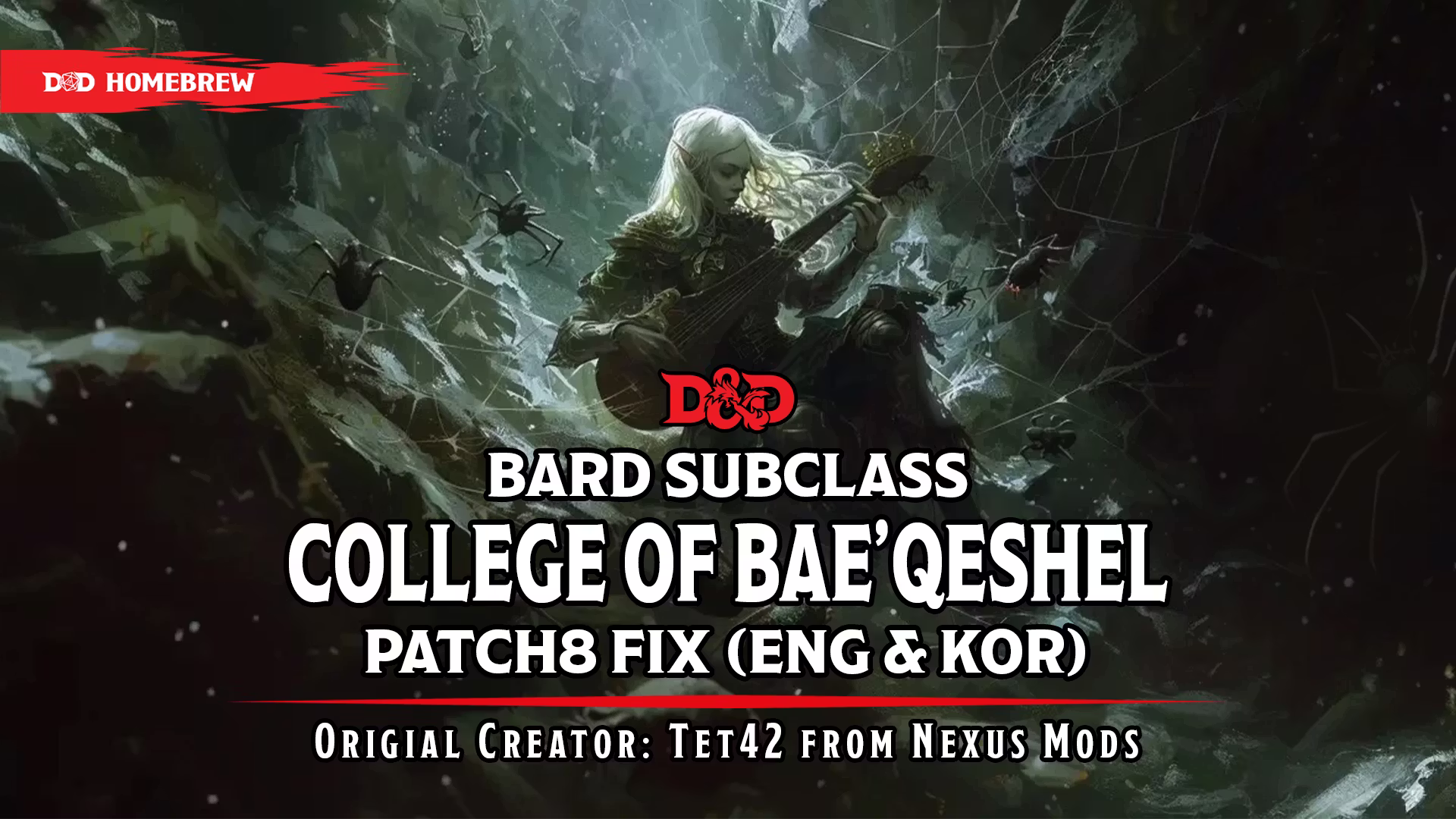 Bae’qeshel 是一种很少有卓尔精灵知道的吟游诗人的艺术。掌握 Bae’qeshel 的人被称为“黑暗吟游诗人”。这种歌曲哀婉动人,充满魔法。