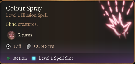 将《色彩喷雾》法术修改为更好地匹配 D&D 5e 2024 更新。该法术依赖于体质豁免,失明状态持续到你下一个回合结束。吟游诗人可以使用此法术。支持7级、8级和9级施法位。