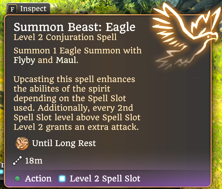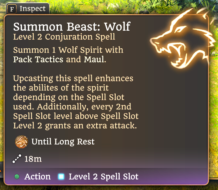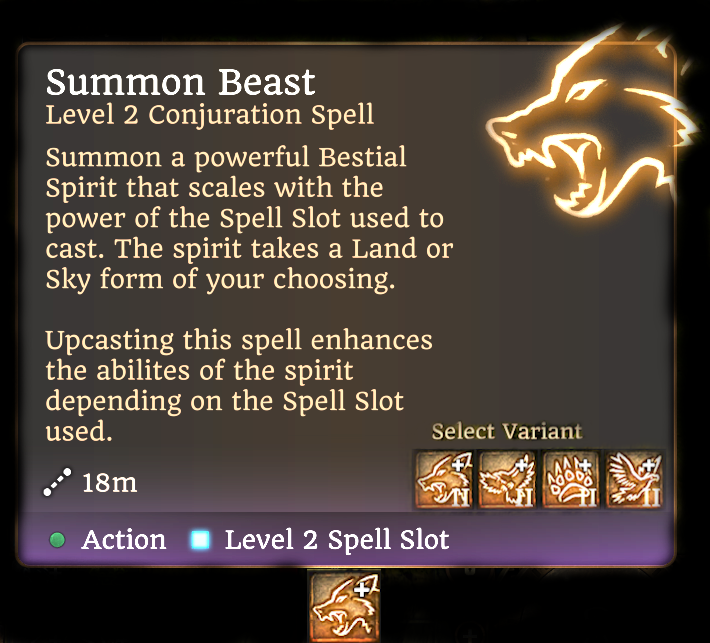 召唤野兽是一个法术等级为2的法术,德鲁伊在第3级解锁,游侠在第5级解锁,并且是吟游诗人魔法秘密功能的一个可能选择。