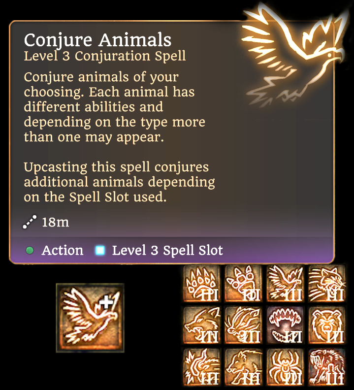 添加了新的法术“召唤野兽”(法术等级2)和“召唤动物”(法术等级3),总共可以召唤16种新动物。基于DnD的等效版本,针对BG3进行了调整,使其感觉公平且平衡。适用于德鲁伊、游侠以及吟游诗人的魔法秘密。