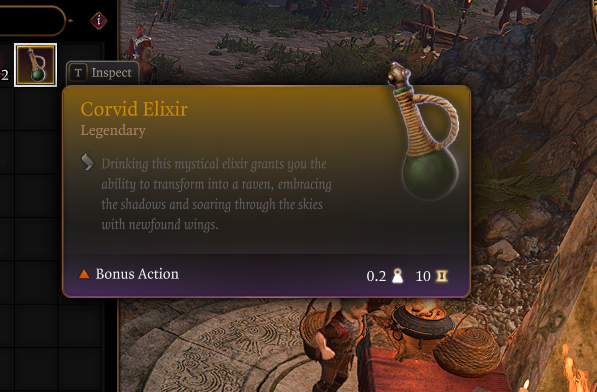 此模组添加了一种药剂,服用后可永久获得一个随心所欲变成Dire Raven的法术。这种药剂可以通过教程宝箱或游戏中的任何主要商人获取。