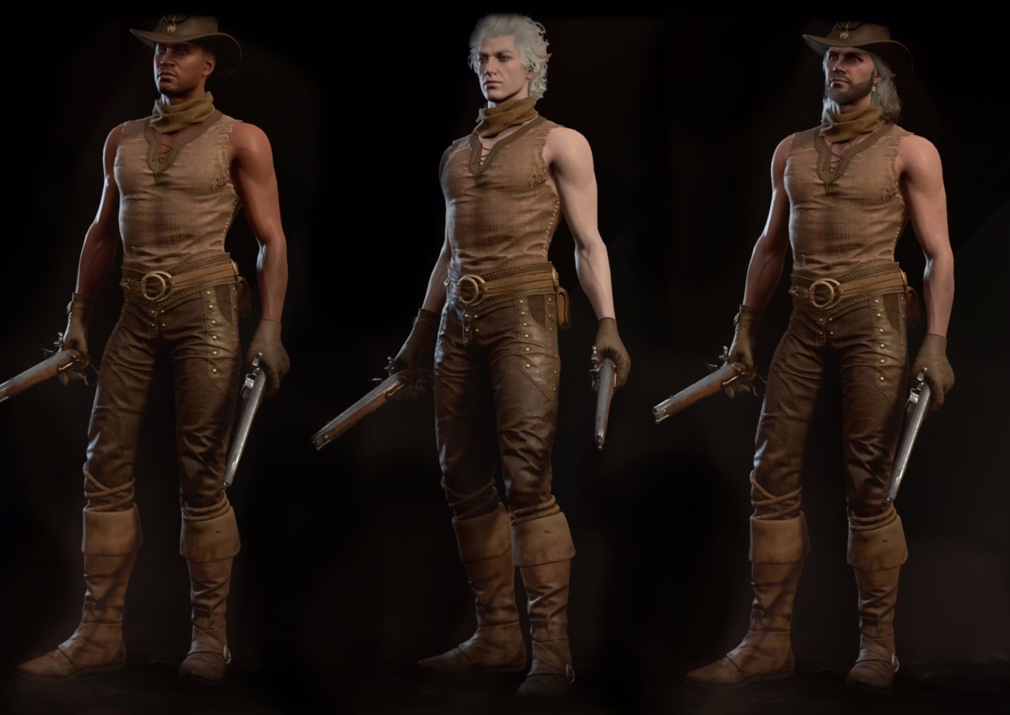 牛仔女郎外观仅适用于体型1(人类、精灵、矮人),而其他体型则有不同的外观(参考图库)。