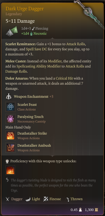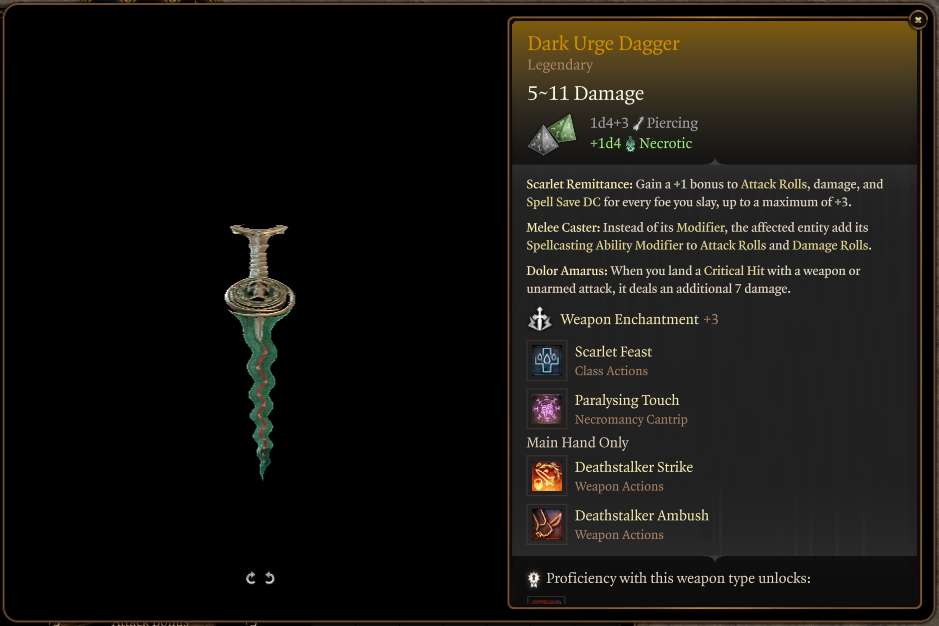 一把用于黑暗欲望的匕首,使用法术能力修正值进行攻击和伤害。可以在教程药水箱中找到。