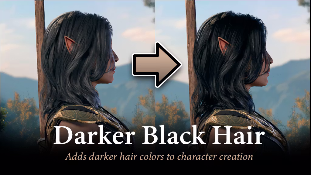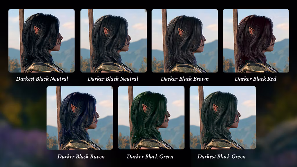一直觉得默认的“黑发”选项太灰,尤其是在游戏内光照下。此外,默认的“更深色”的颜色对我来说还不够深。