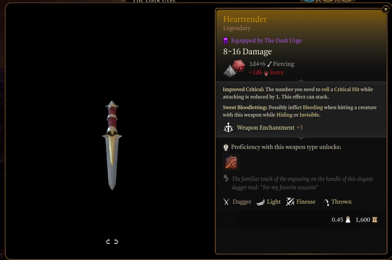 - 心割者:+3匕首;1d4穿刺伤害 + 1d6力场伤害;命中数 -1
