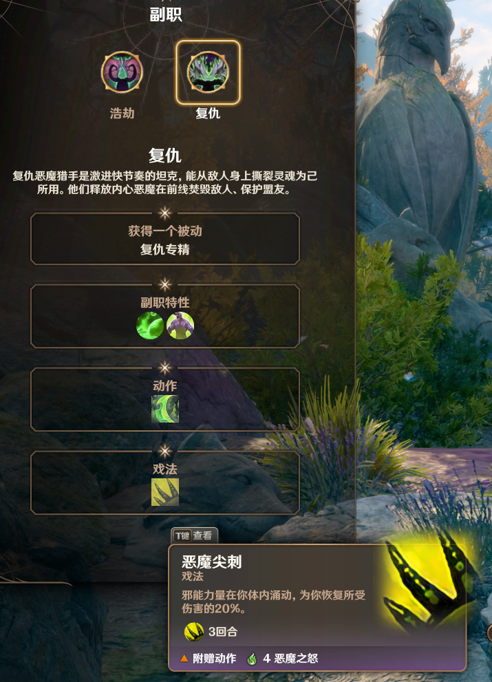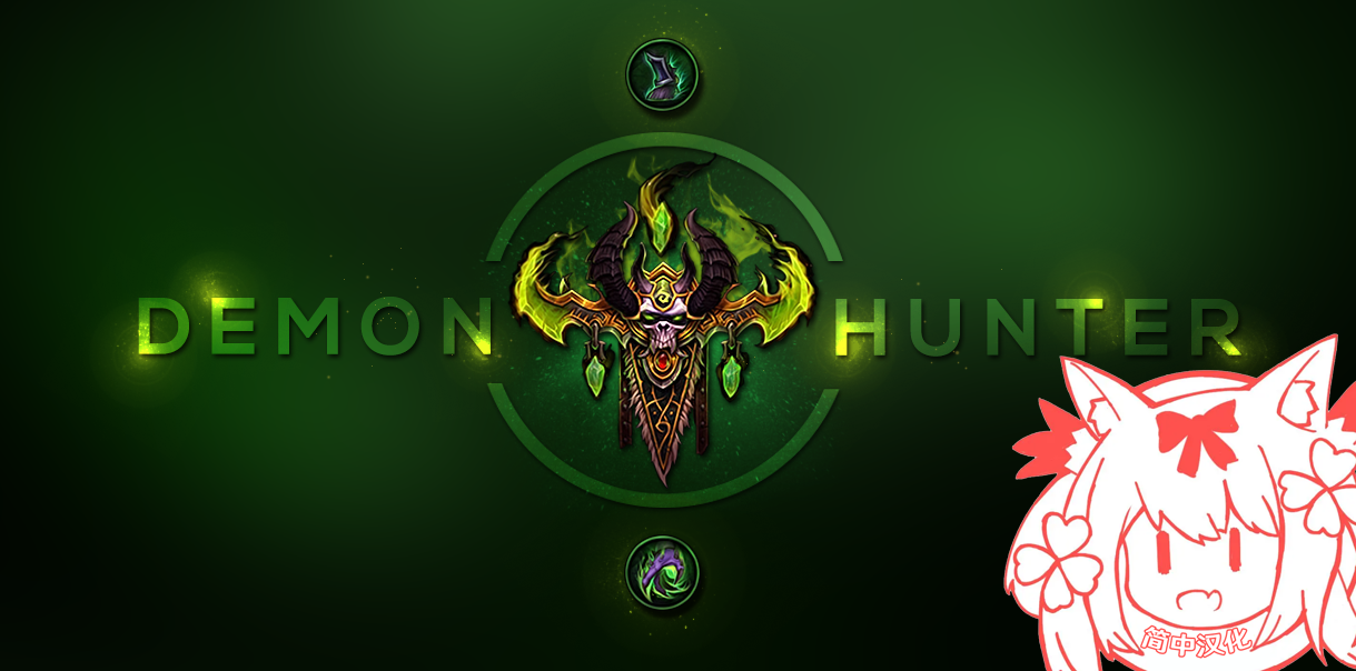 《魔兽世界》中的恶魔猎手职业以及浩劫恶魔猎手和复仇恶魔猎手子职的中文精翻。