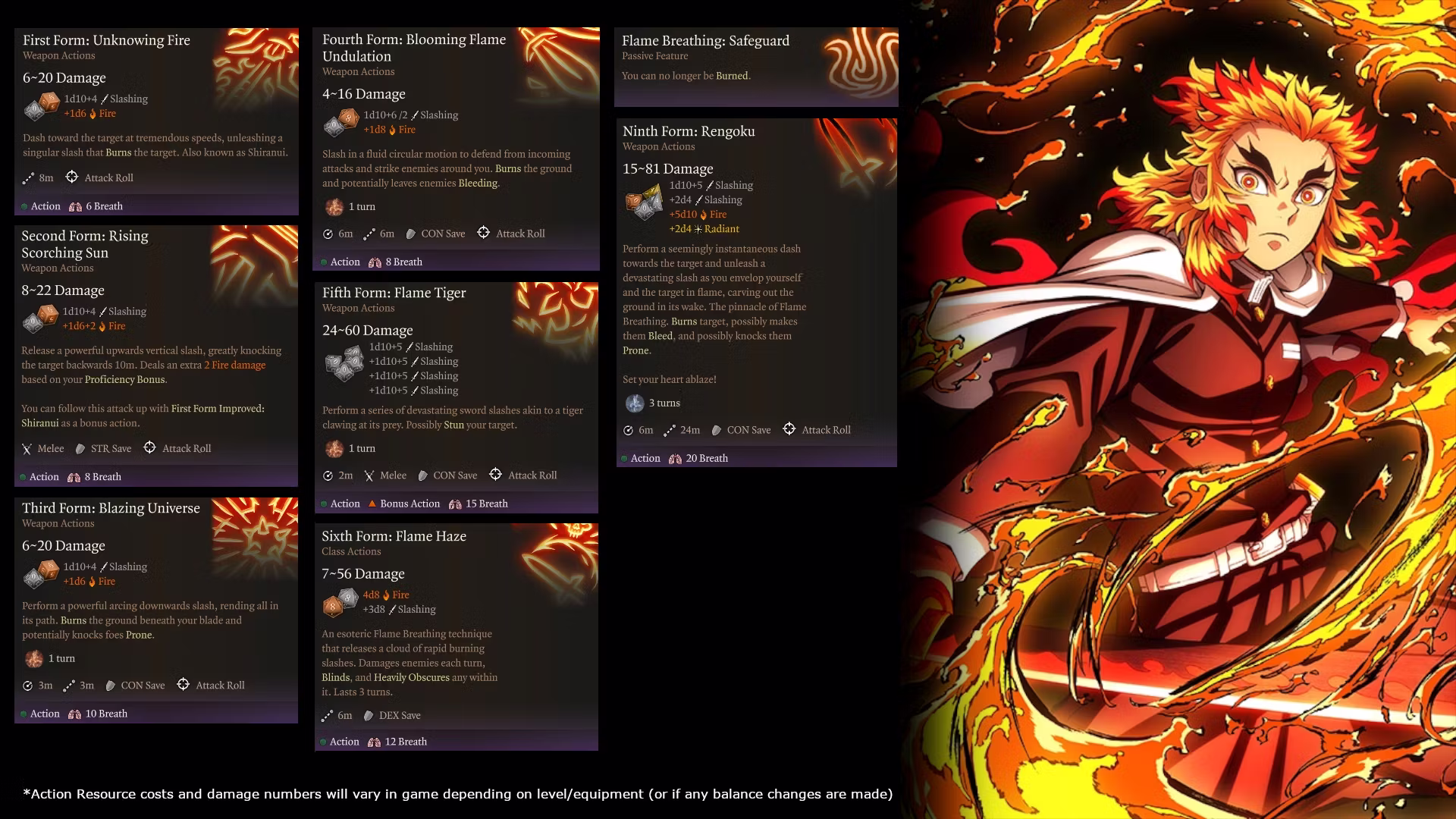 鬼杀队在鬼杀队组织中占据首要位置,该组织的唯一目标是消灭恶鬼。这些战士们肩负着猎杀和消灭恶鬼的崇高使命。鬼杀队员们练习一种名为“全集中呼吸法”的神秘呼吸技巧,通过最大限度地扩展肺部容量来吸入尽可能多的空气,加速血液循环,提高体温,并增强身体能力以应对战斗。大多数队员专注于特定的呼吸流派,其中绝大多数模仿自然界的某个方面,如火焰、水、雷电或雾气。也有一些基于不太传统的元素(例如花朵)甚至抽象概念(例如爱情)的呼吸流派。