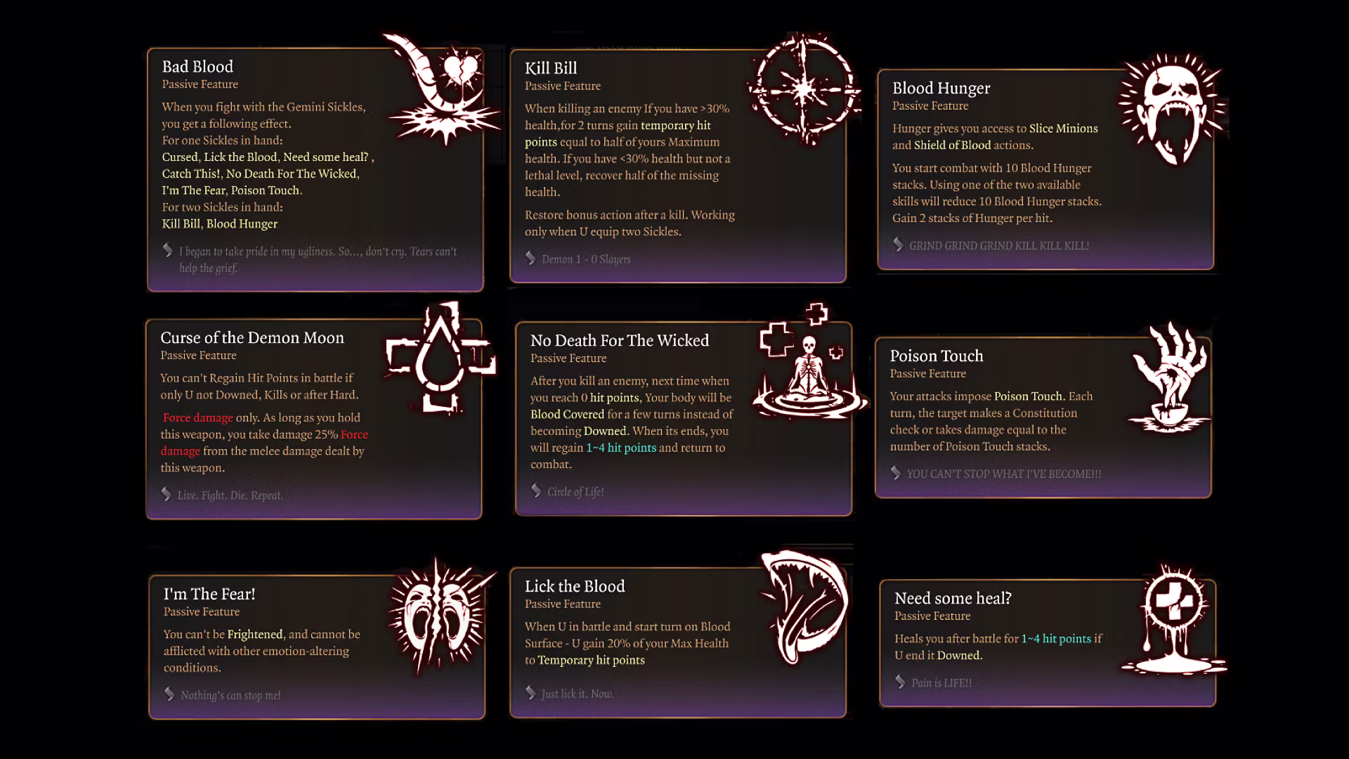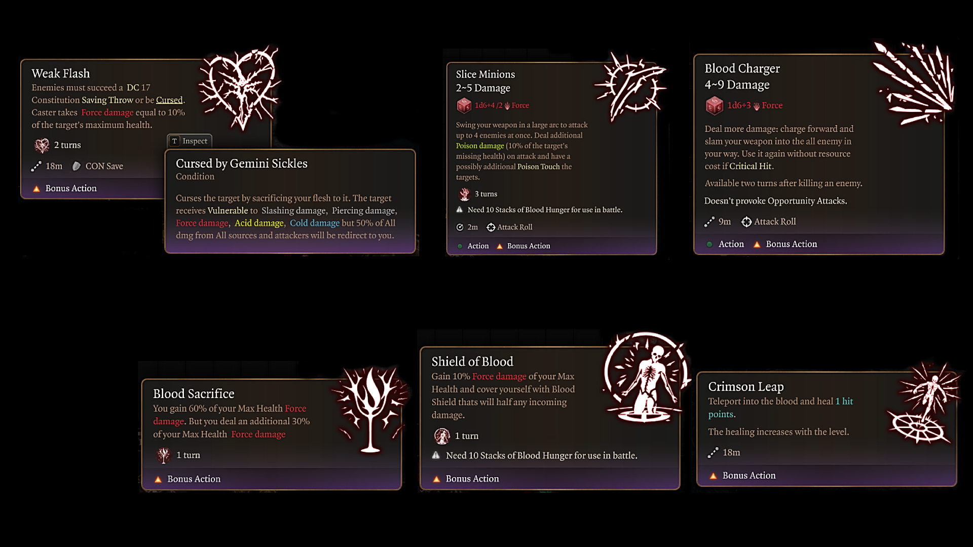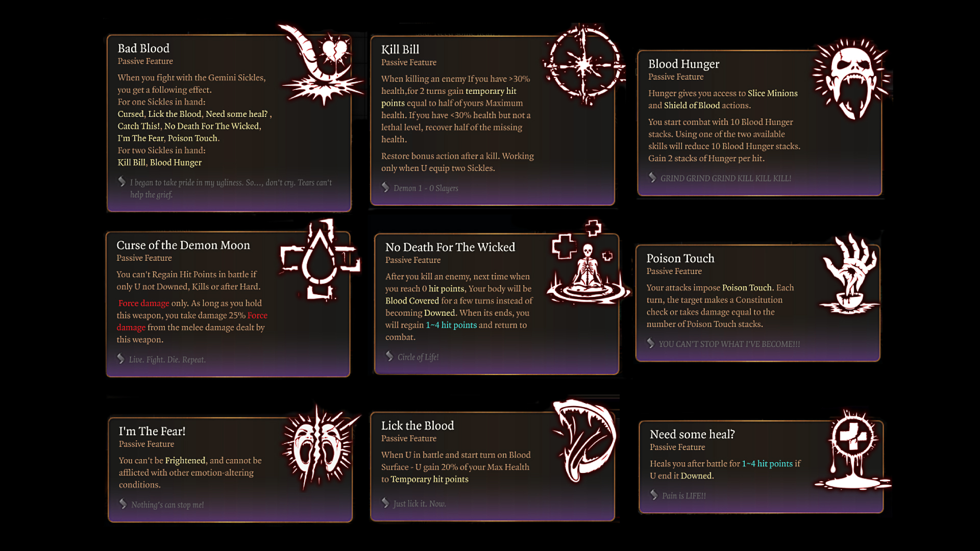 最初的想法是重现 Gutaro 的技能组合,并通过镰刀实现。然而,随着镰刀成为新的机制,它们成为了独立的武器并有自己的玩法。