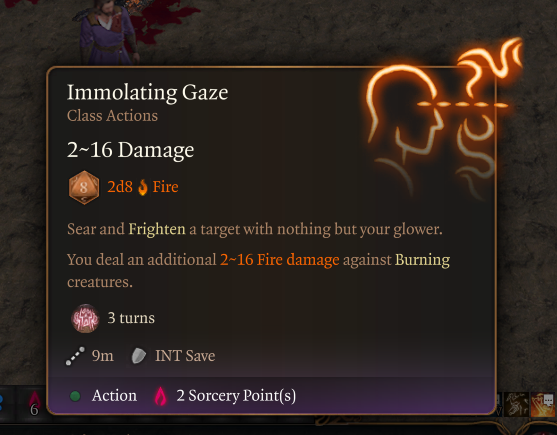 燃烧之刃(消耗1点术士点数,火焰圣裁2d6并持续两轮的燃烧效果,没有升级版本)