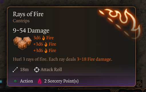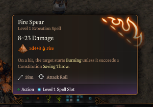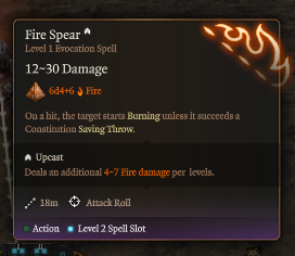火焰长矛更新:我创造了一个名为“火焰长矛”的新法术。这个法术有点特别,它造成5d4 + 法术施放能力修正值的伤害,并且可以对目标造成燃烧效果。它的强度会随着1d4 + 法术施放能力修正值增加而提升。你越擅长魔法,这个法术就越强大!我参考了色球和引导之矢来设定伤害数值。在低等级时造成的伤害较低,在高等级时则较高,但始终是一个更稳定的伤害值,因为最小值更高。该法术已添加到德鲁伊、法师和术士中。
