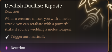 这个专长有点强力,我承认这一点,但这是为了增加游戏乐趣并更深入地体现决斗者的角色特点。出于平衡考虑,我没有赋予战斗风格,而是让你可以通过选择专长来获得这些好处。但是我也知道很多人只通过3个专长和属性提升就能玩到高等级,因此我增加了这个专长的强度。
