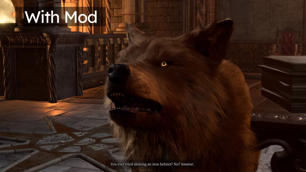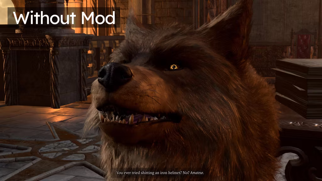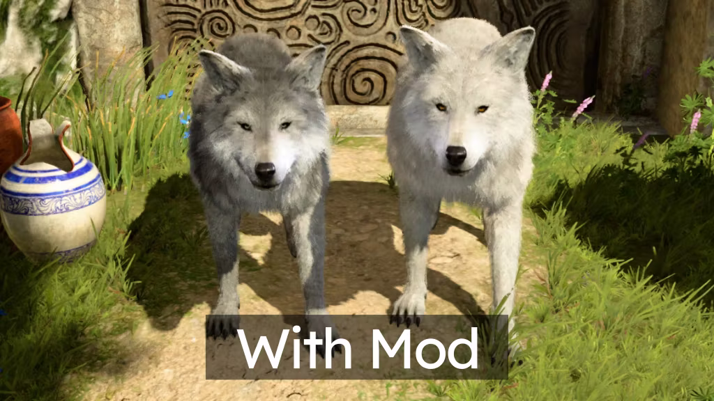 此模组更改了狂狼的外观,例如玩家德鲁伊变身时的形象,通过将基础资源更改为使用普通狼模型来实现,同时保留任何具有独特颜色的 NPC 的特性。