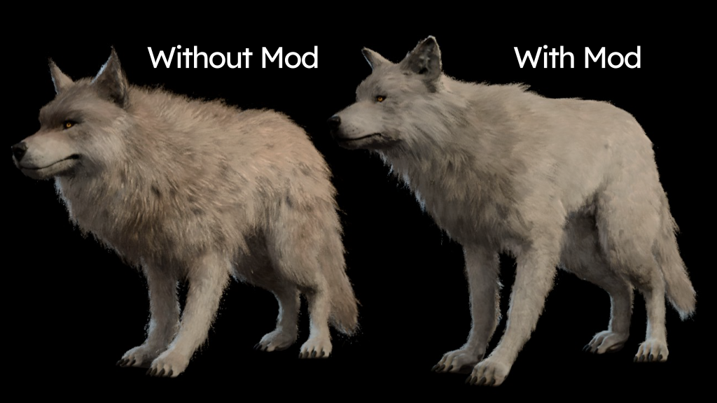 该模组非常简单且纯粹是视觉上的调整。狂狼仍然比普通狼大,并未更改任何统计数据或能力。