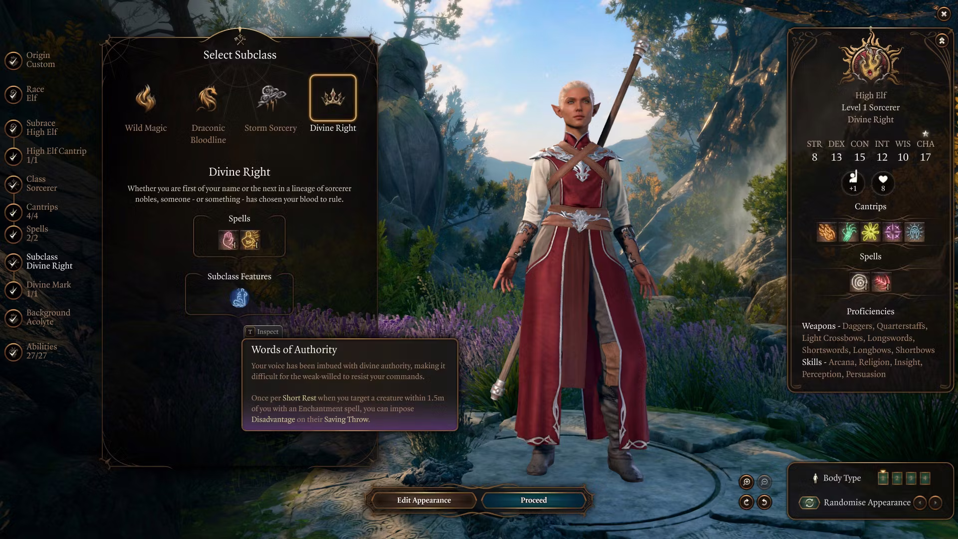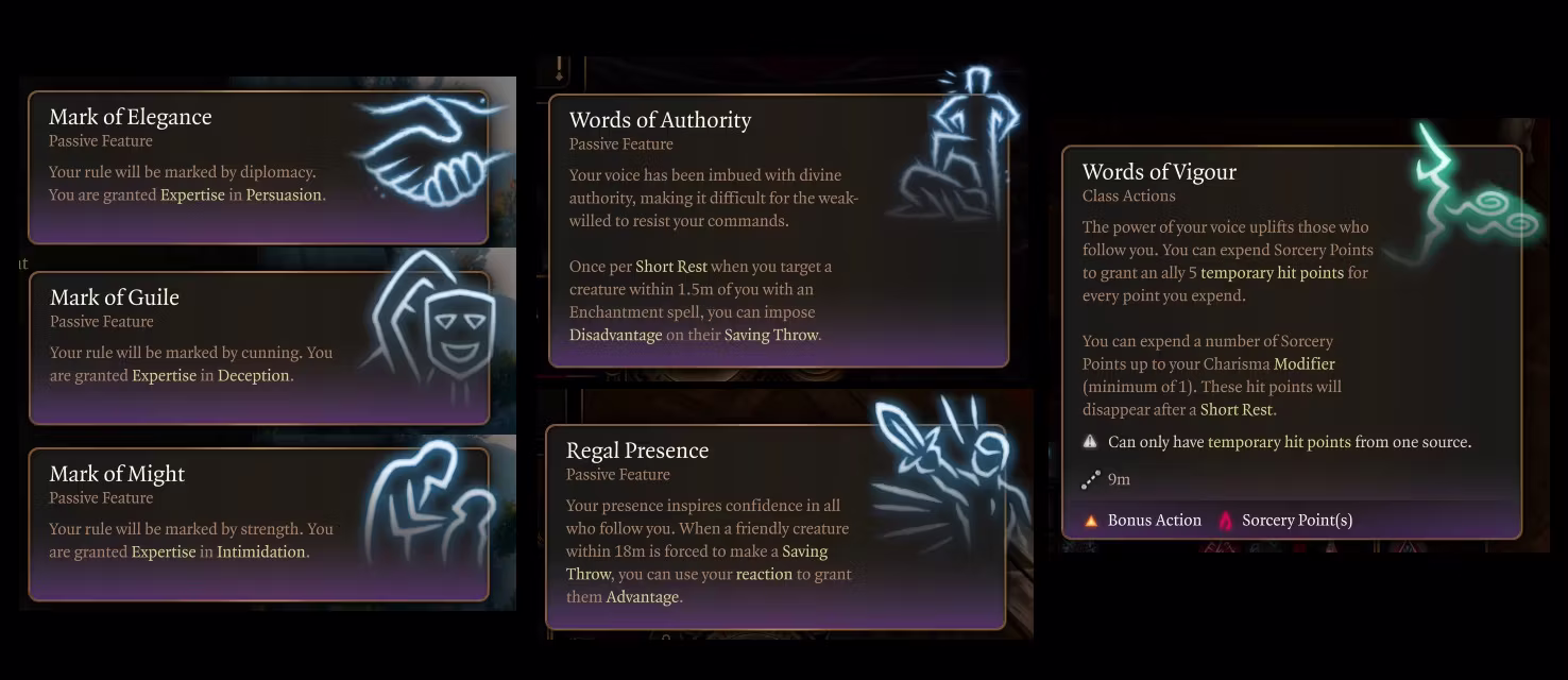 - 由于基础施法者在 BG3 中于第 11 级获得他们的常规第 14 级特性,我做了相应的调整。你在第 11 级获得皇家威严,在第 14 级获得改进的权威范围。