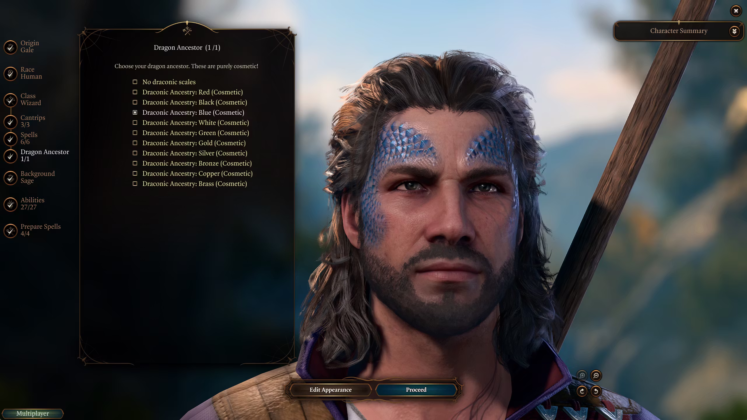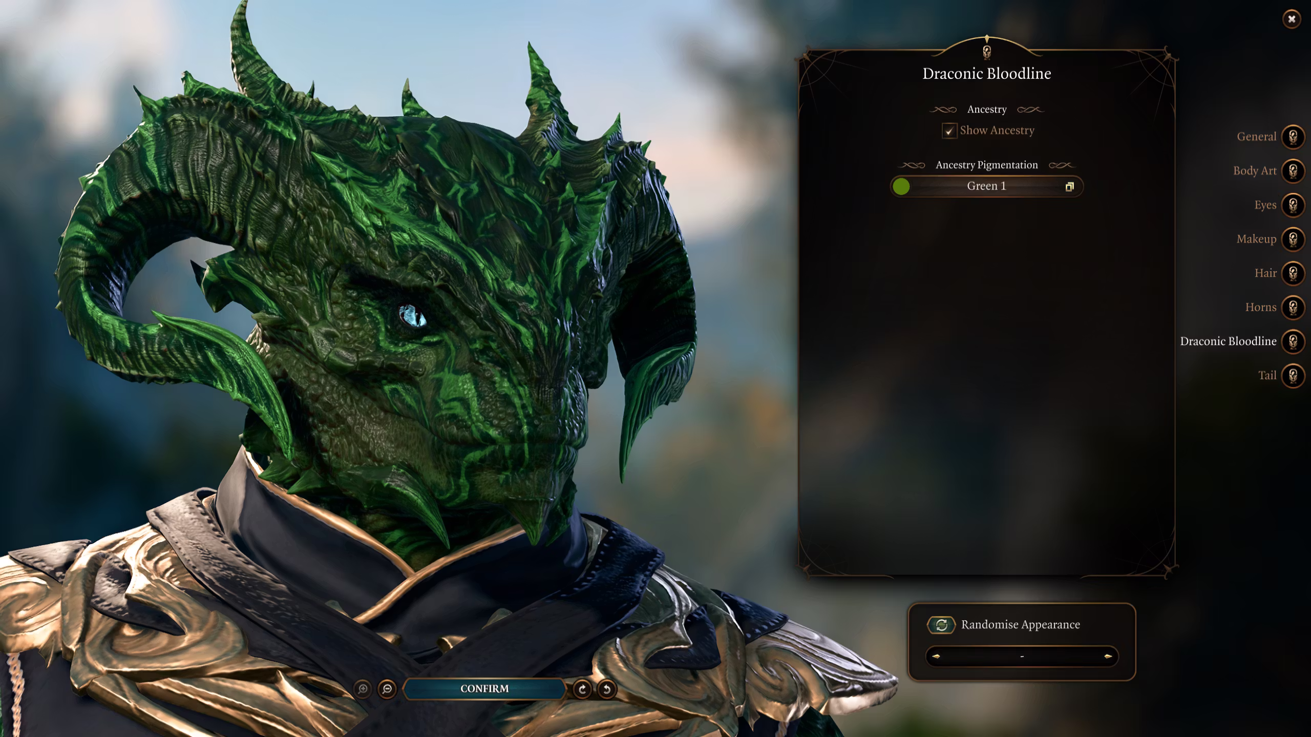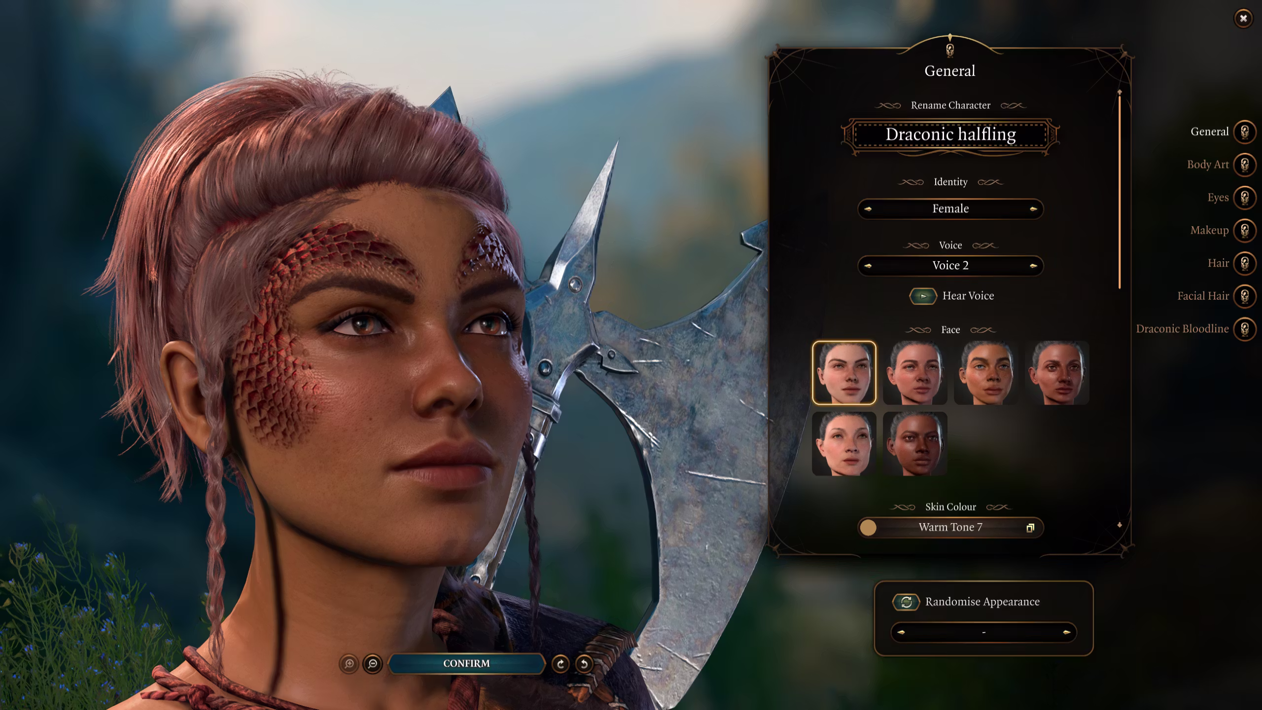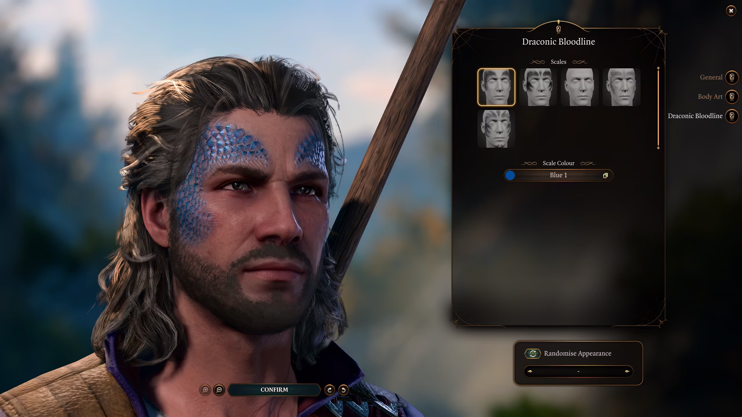 – 在创建角色界面中,你只能选择非常基础的选项,这是 UI 的限制,我目前无法绕过。为了进行详细自定义,请必须使用营地内的魔法镜。建议选择龙术士职业以便在创建角色界面中访问编辑器,选择你喜欢的预设并记住它们,然后在魔法镜中应用。