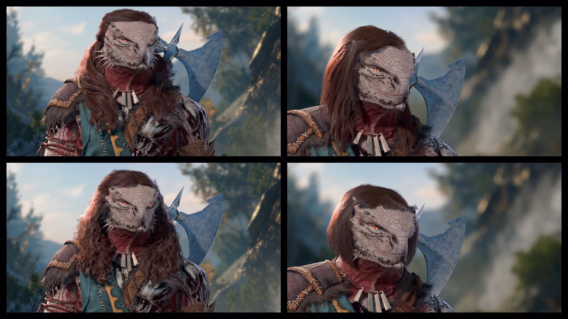 此模组为《上古卷轴5:天际》中的龙裔角色提供了原版头发选项,根据选择的徽章不同,剪裁的程度也会有所不同。请参阅图片和链接视频。