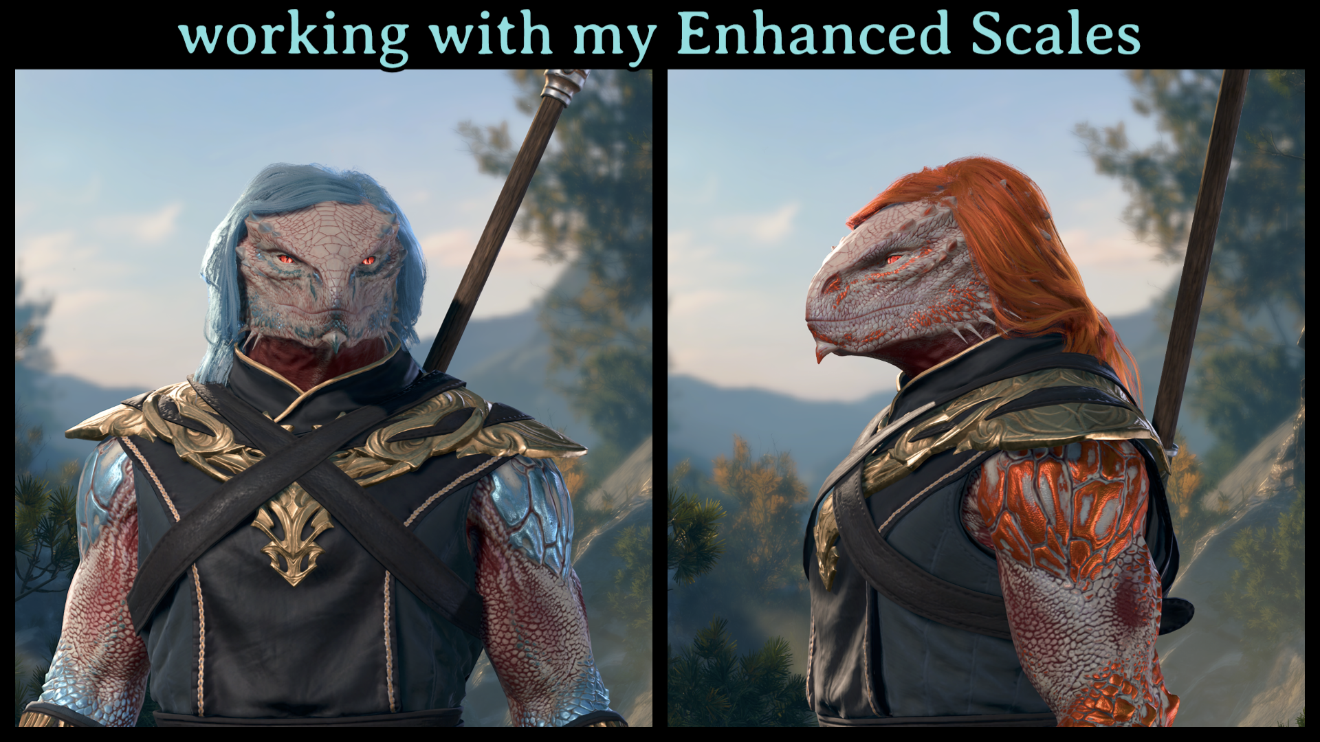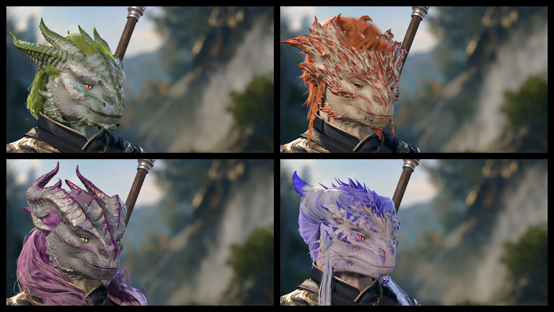 此模组为《上古卷轴5:天际》中的龙裔角色提供了原版头发选项,根据选择的徽章不同,剪裁的程度也会有所不同。请参阅图片和链接视频。
