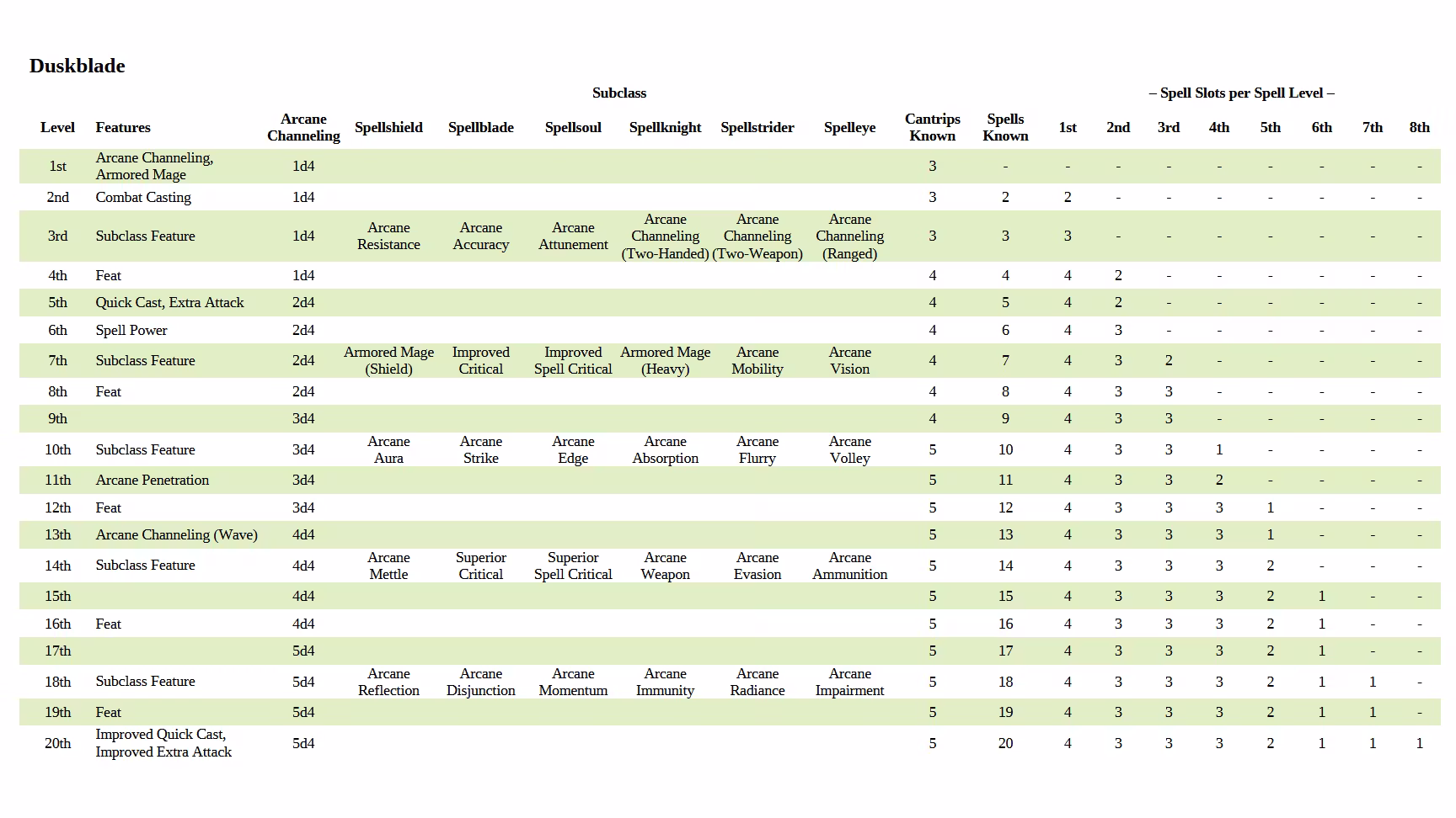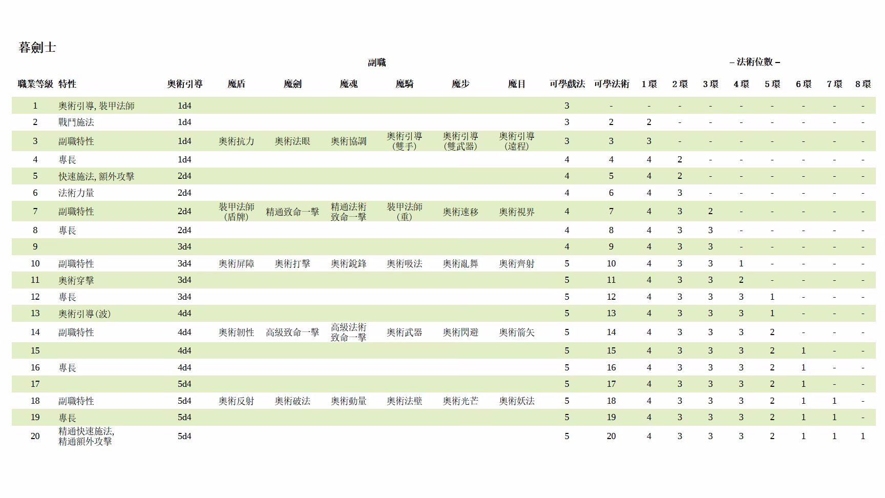 施法属性:智力(已知的法术总是准备好的,不能从卷轴中学习法术)