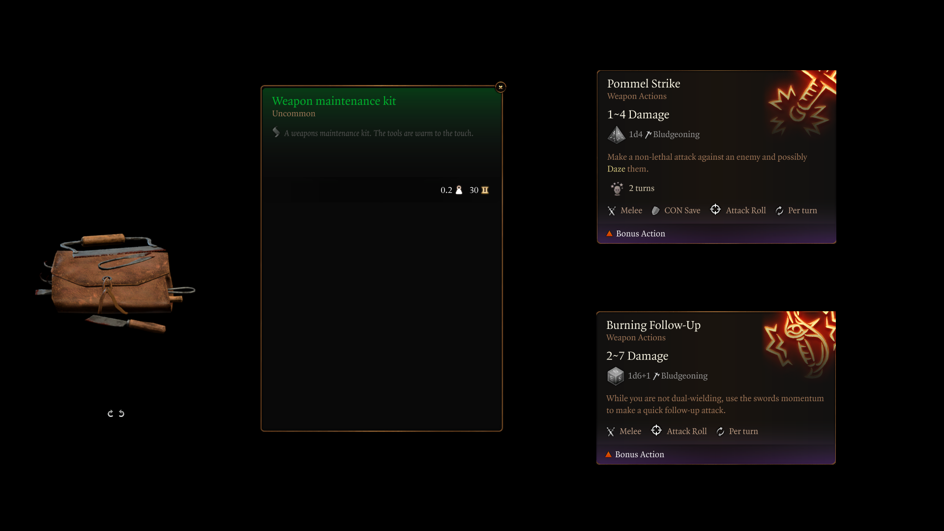 武器维护工具包 + 旧仪式长剑 + 祭祀匕首