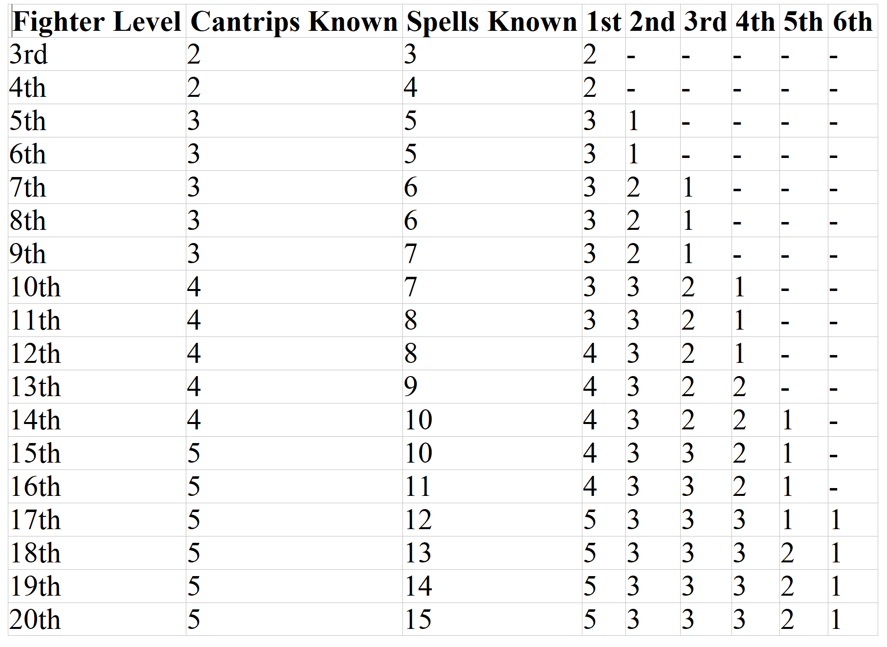 委托制作的模组。将奇术骑士的法术进阶改为接近半施法者的子类,并且在选择法术时取消了法术学派限制。