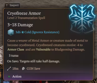 2 级法术:Cryofreeze Armor,可升级至 9 级