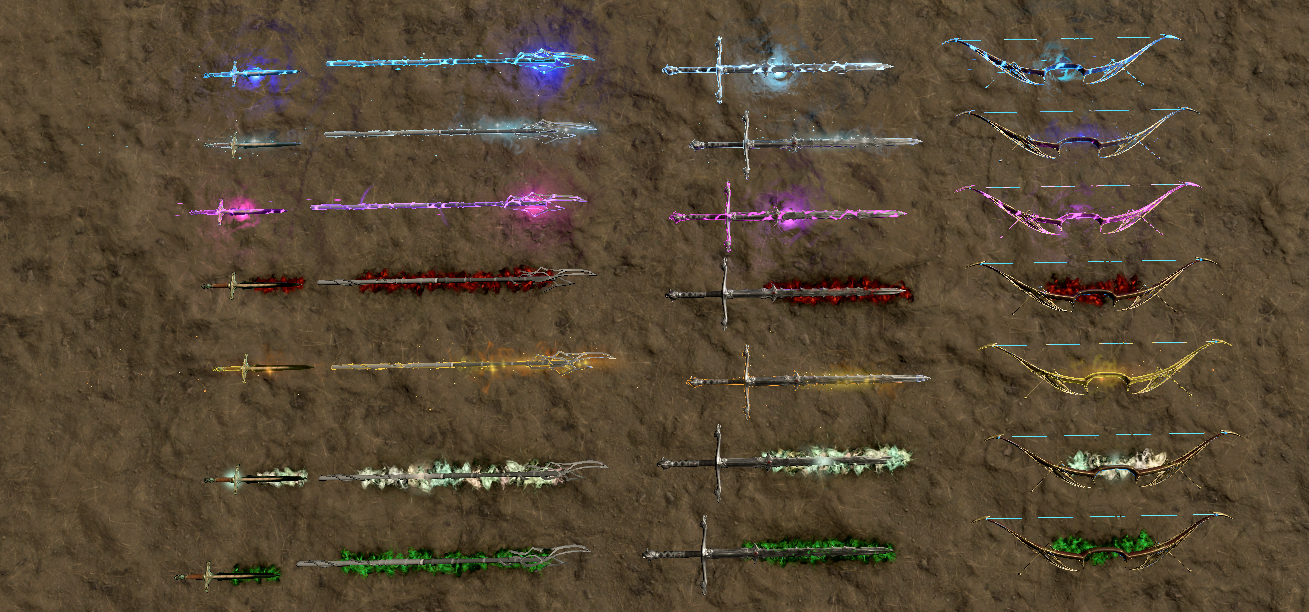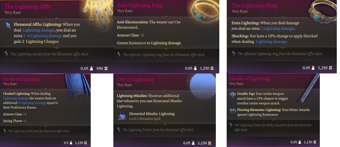 每种元素都有一个物品系列,效果大致相同。我已经上传了闪电版本的每个物品的照片。但模组为每种元素添加了一个完整的物品集合。
