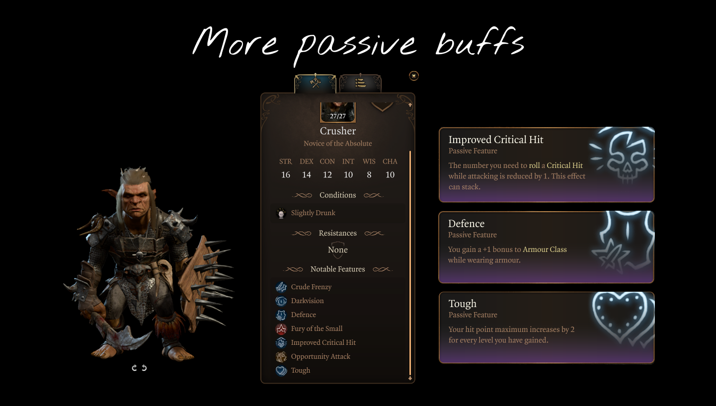 - 为敌人和NPC盟友添加更多的法术、行动和被动增益