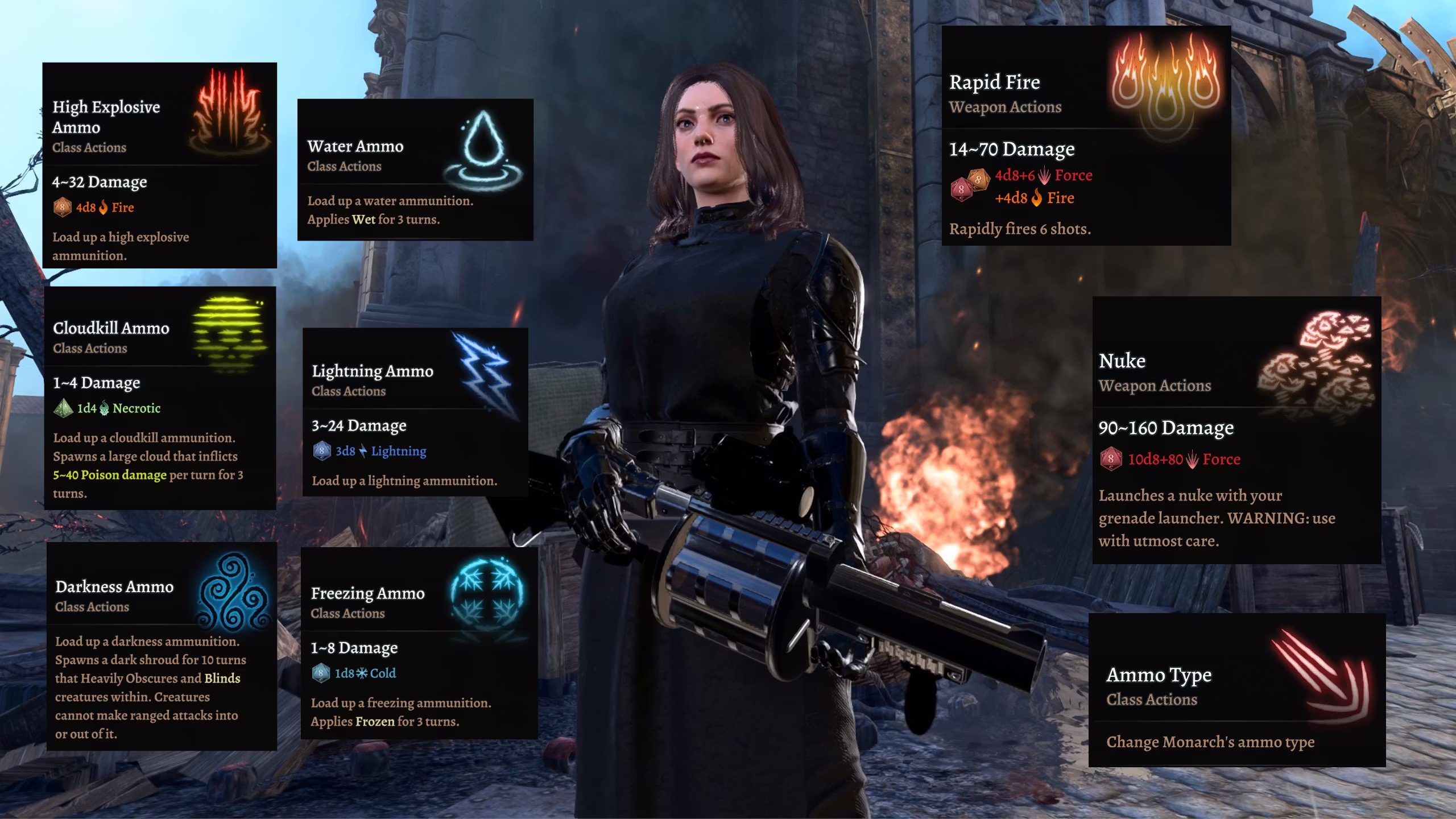 有3种稀有度版本,每增加一个稀有度等级就会获得额外的技能;快速射击和核爆