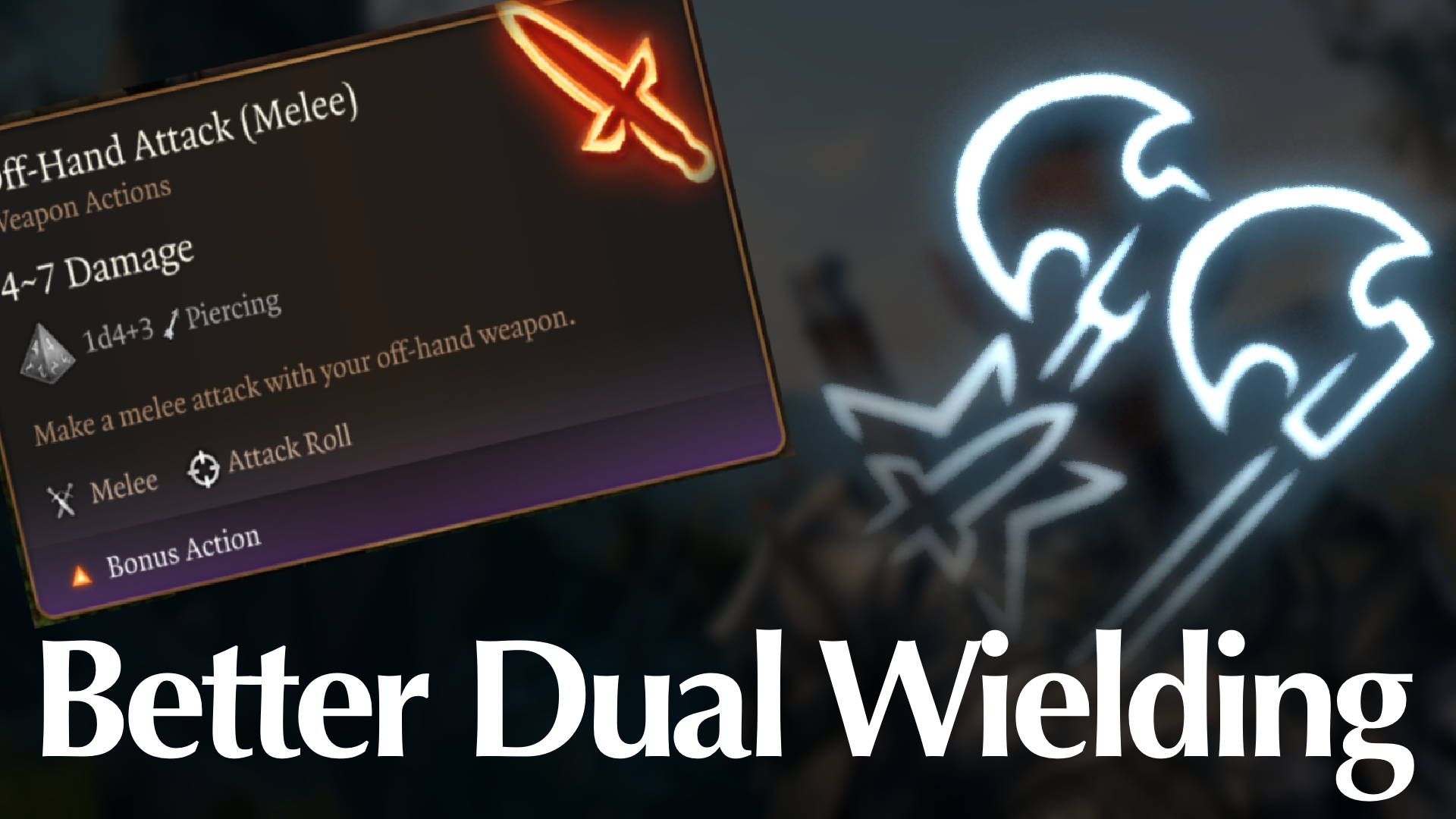 - 这个特性几乎与通用的“额外攻击”特性工作方式相同,唯一的区别是它不需要特定职业达到5级才能获得。你只需要拥有“双持武器战斗”风格即可。你可以通过我的技能模组或单级战士来获取该风格。只要其他模组没有覆盖被动的“双持武器战斗”,来源并不重要。