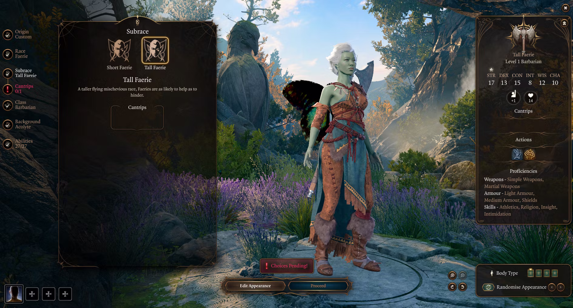 - 费伊通道(在 3 级时,作为切换 – 让你变得微小),以及精灵之火(在 5 级时,每长休一次)。
