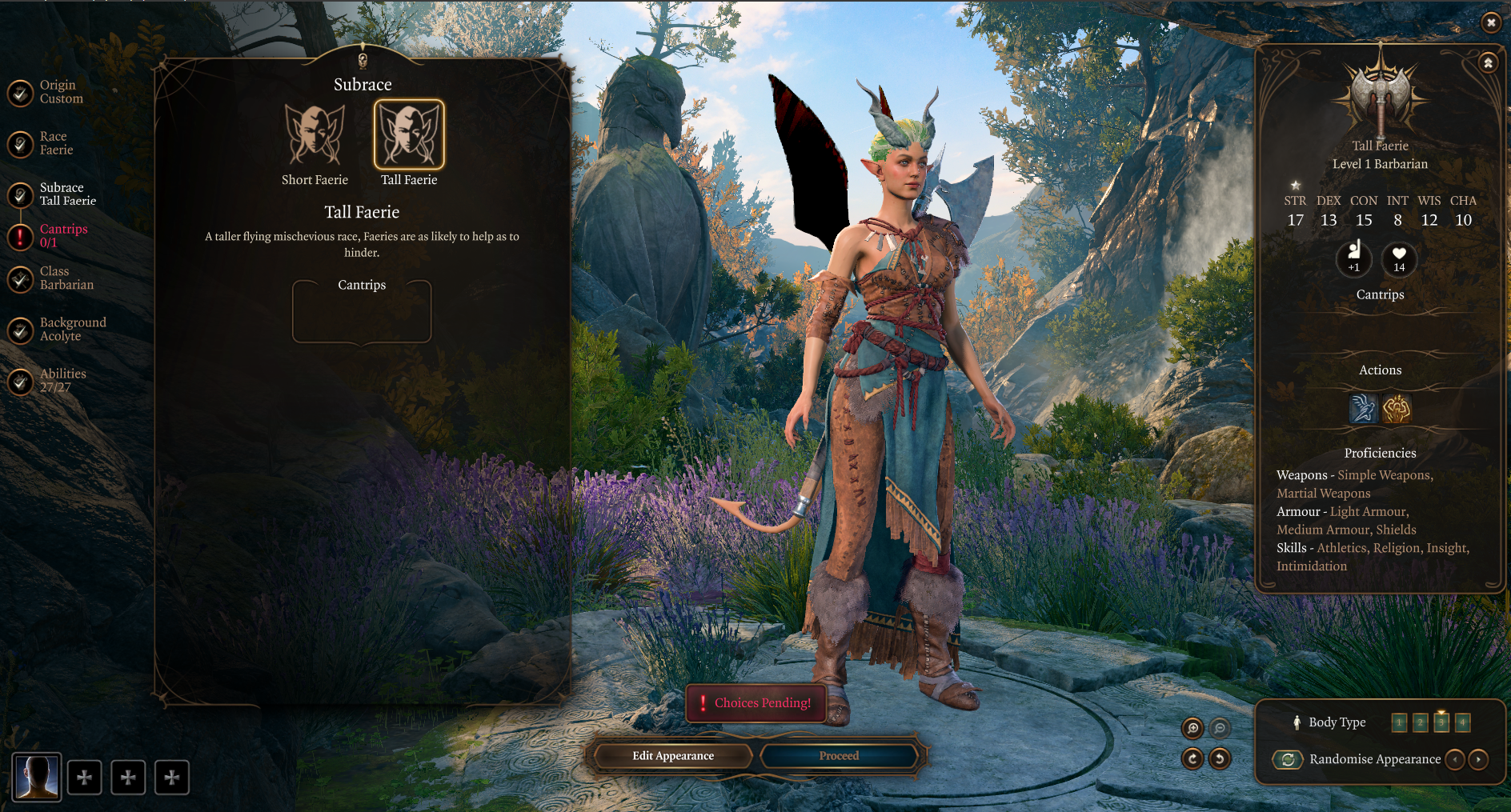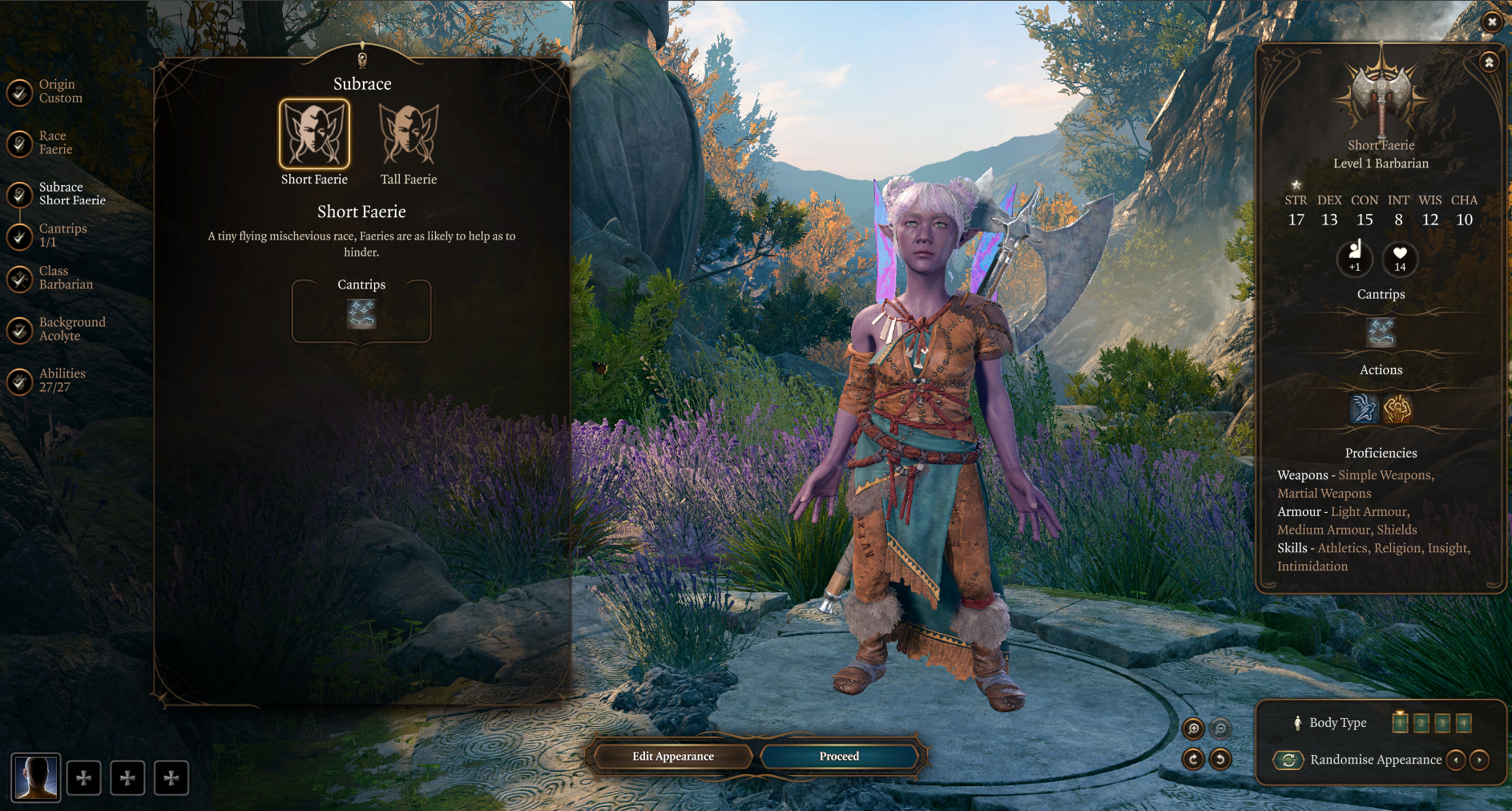 - 费伊通道(在 3 级时,作为切换 – 让你变得微小),以及精灵之火(在 5 级时,每长休一次)。
