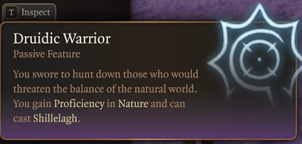 你发誓要追捕那些威胁自然世界平衡的人。你会获得自然技能精通,并可以施放 Shillelagh 法术。