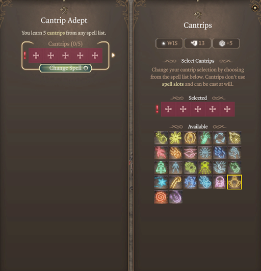 添加了一个新的专长,允许你选择任意5个法术。