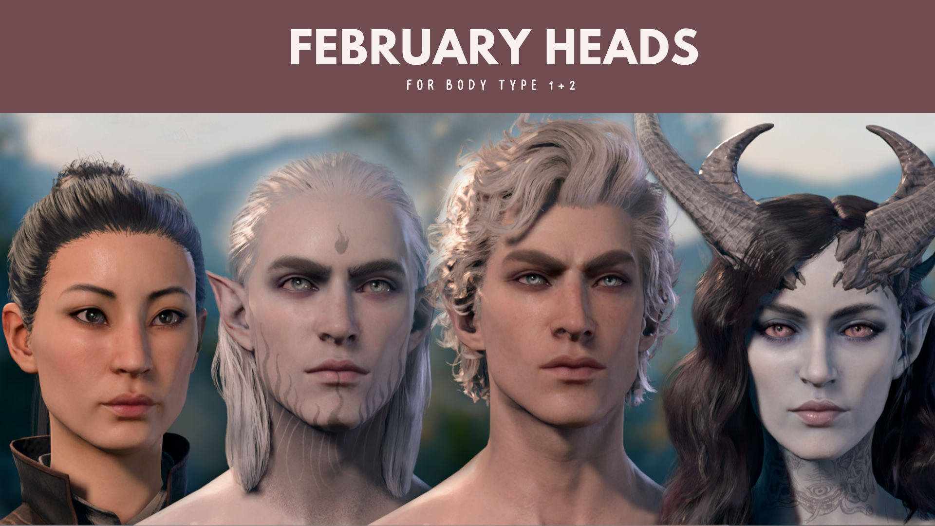 为角色创建提供了4个新的头部模型。适用于(半)精灵、杜沃格、人类和提夫林。