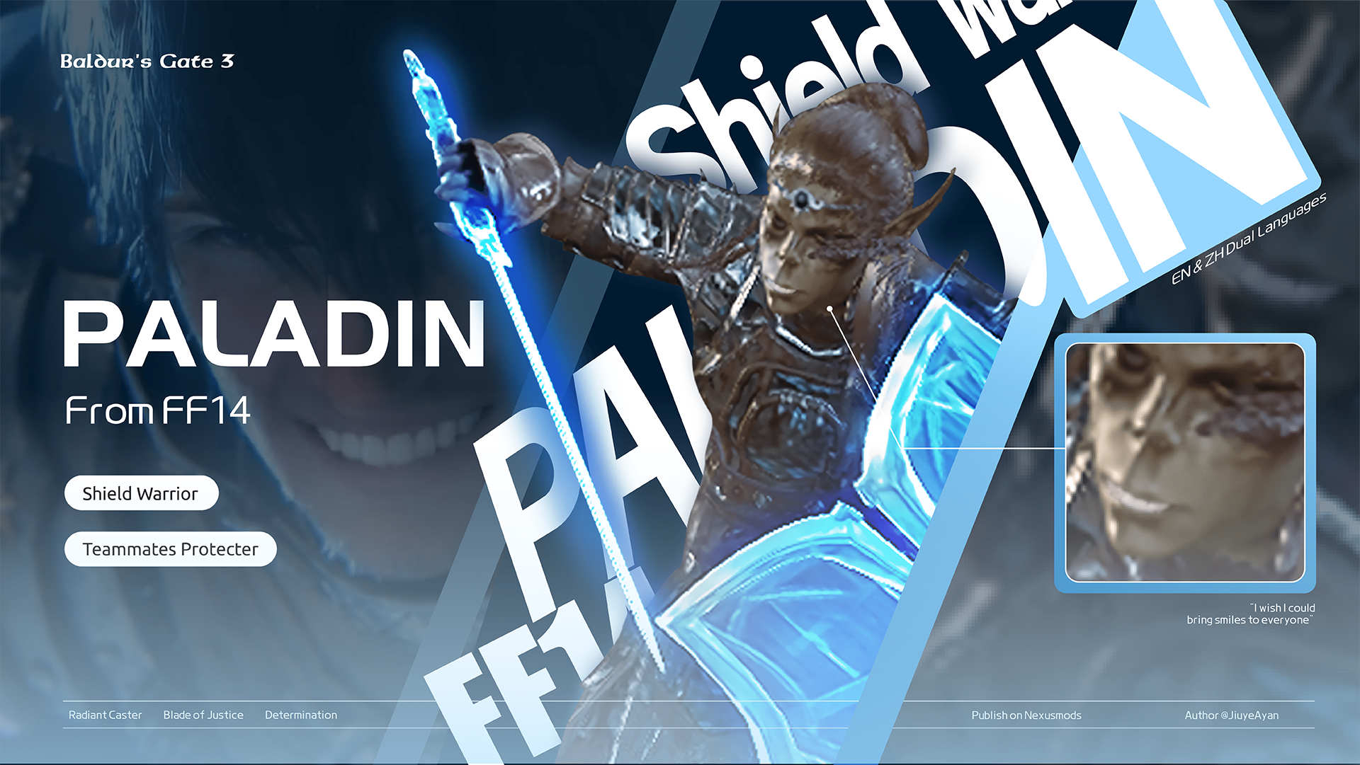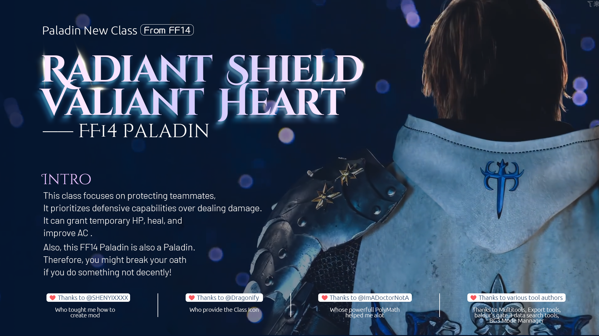 > 来自FF14 Paladin的法术将被识别为原始BG3 Paladin的法术,这意味着原始Paladin的装备也适用于FF14 Paladin!